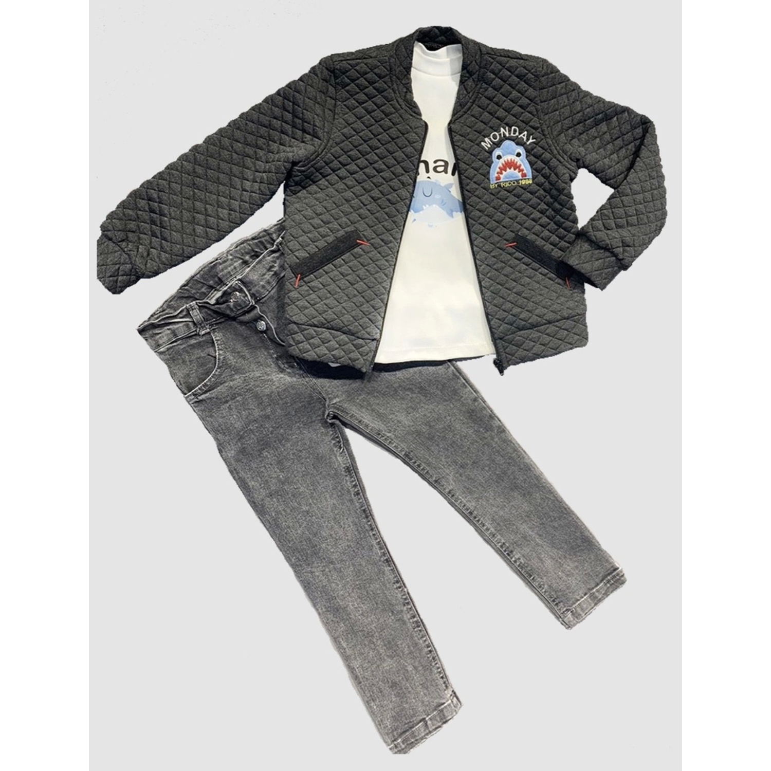 4-5-6 Yaş Kot Pantolonlu Pilot Mont Uzun Kollu Penye Sweat 3lü Erkek Çocuk Takımı