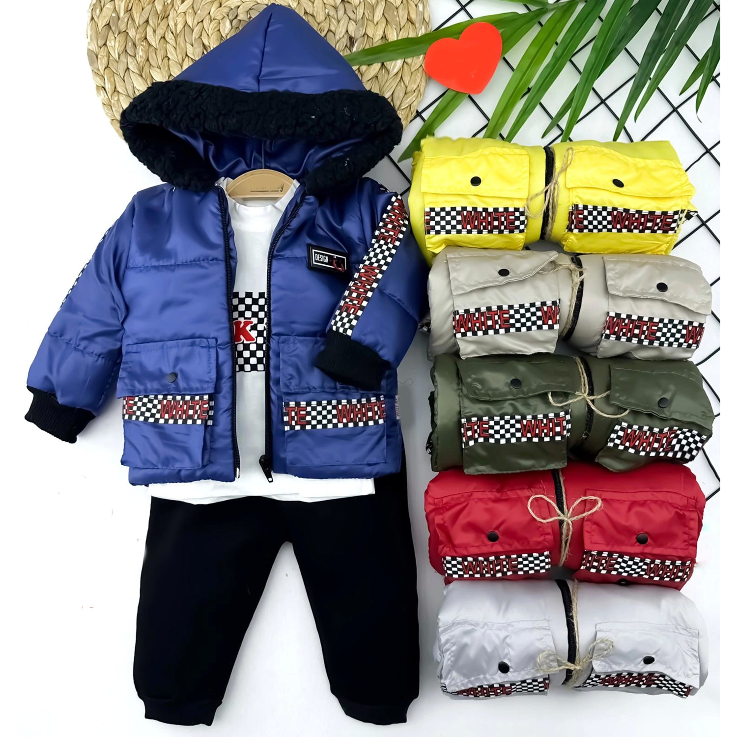 9-12-18-24 Ay Kapşonlu Fermuarlı Mont Pantolon Uzun Kollu Sweatli 3lü Kız Erkek Bebek Takımı
