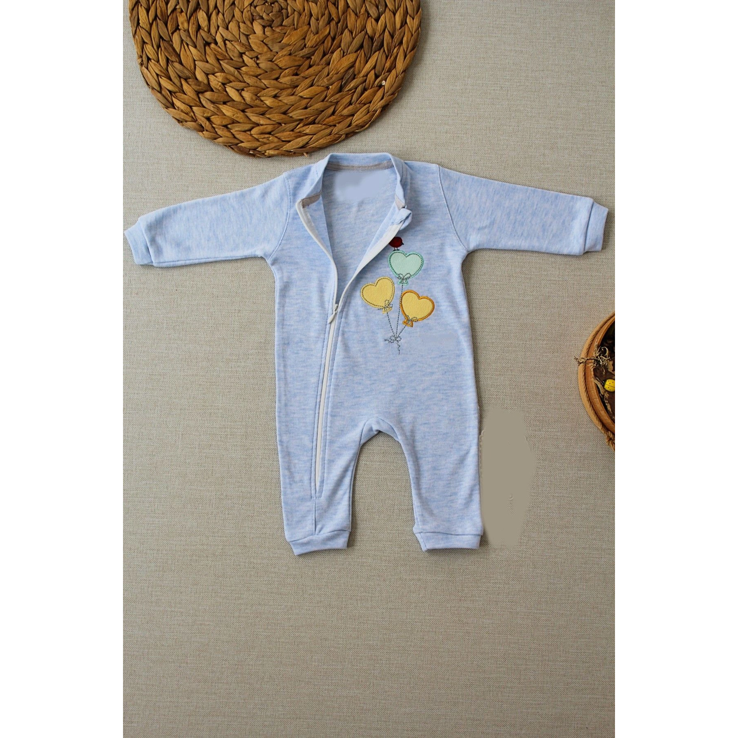 3-6 18-24 24-36 Ay Uçan Balonlar Nakışlı Ef Boy Fermuarlı Erkek Bebek Tulumu