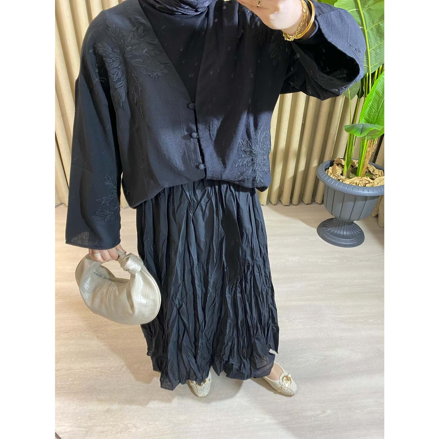 Astarlı Kırışık (Crush) Siyah Etek L-XL Beden