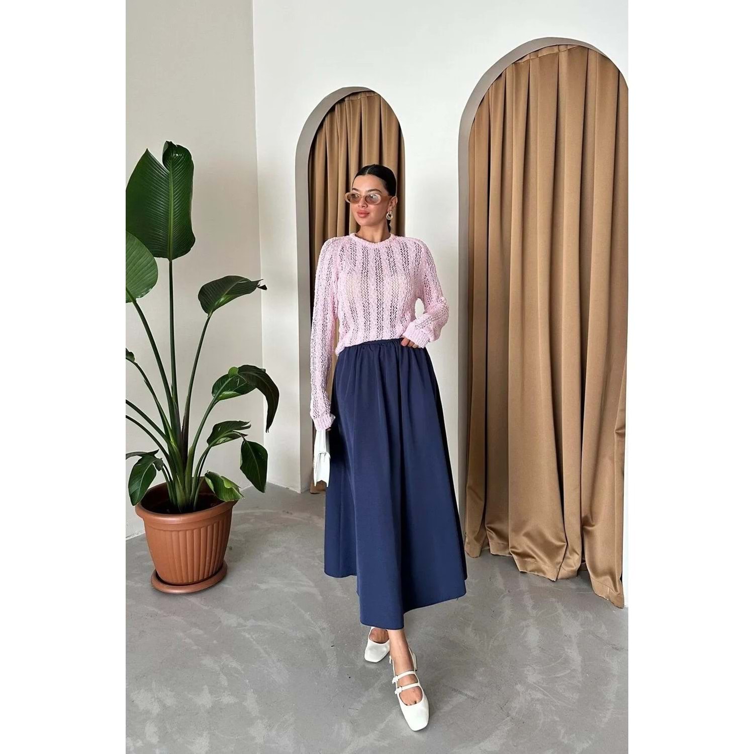 Lacivert uzun etek, fermuarlı lacivert etek, yüksek bel uzun etek, şık lacivert etek, günlük uzun etek, ofis kombini etek, kadın uzun lacivert etek, S M L uzun etek