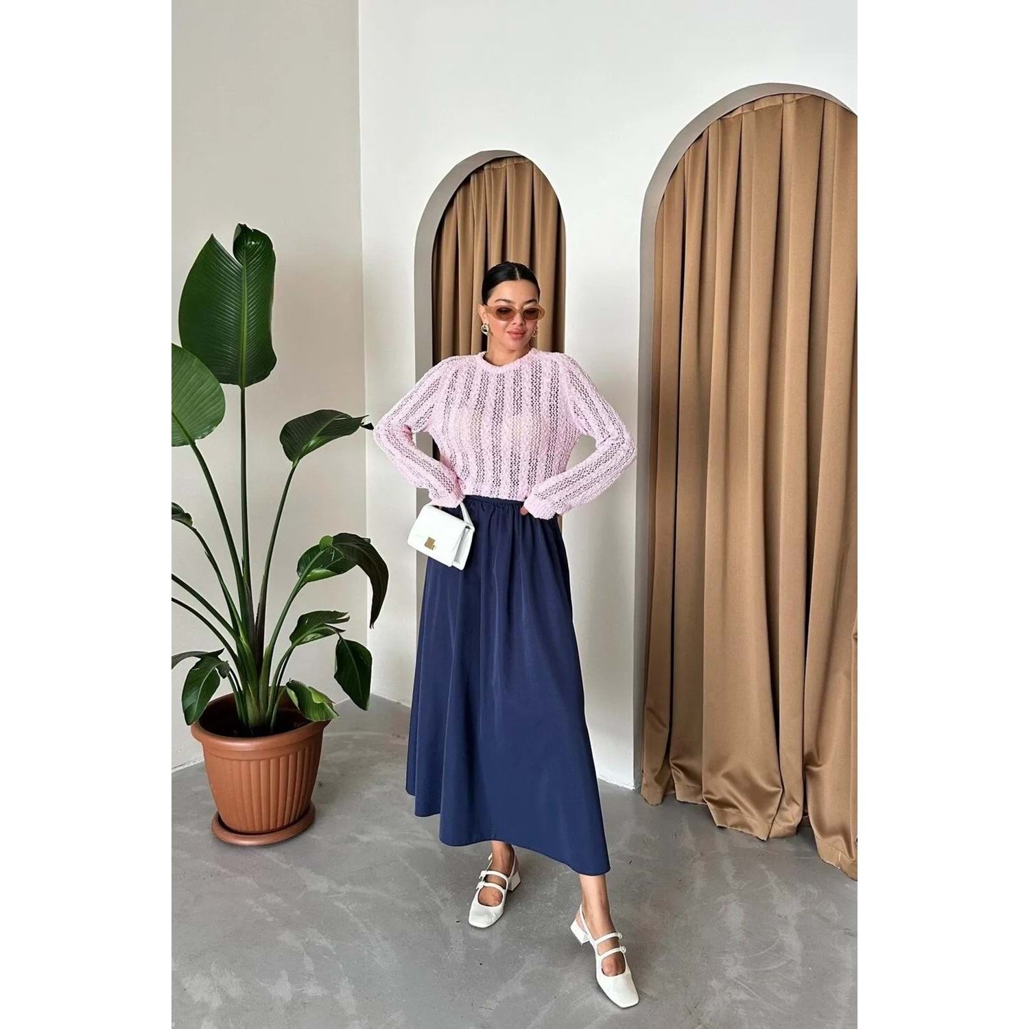 Zarif ve modern duruşu ile her kombine uyum sağlayan Lola Fermuarlı Uzun Lacivert Etek, yüksek bel tasarımı ve akıcı dokusu ile konforu şıklıkla buluşturuyor. %100 polyester kumaşı sayesinde gün boyu formunu koruyan bu etek, fermuar detayı ile pratik kullanım sunar.