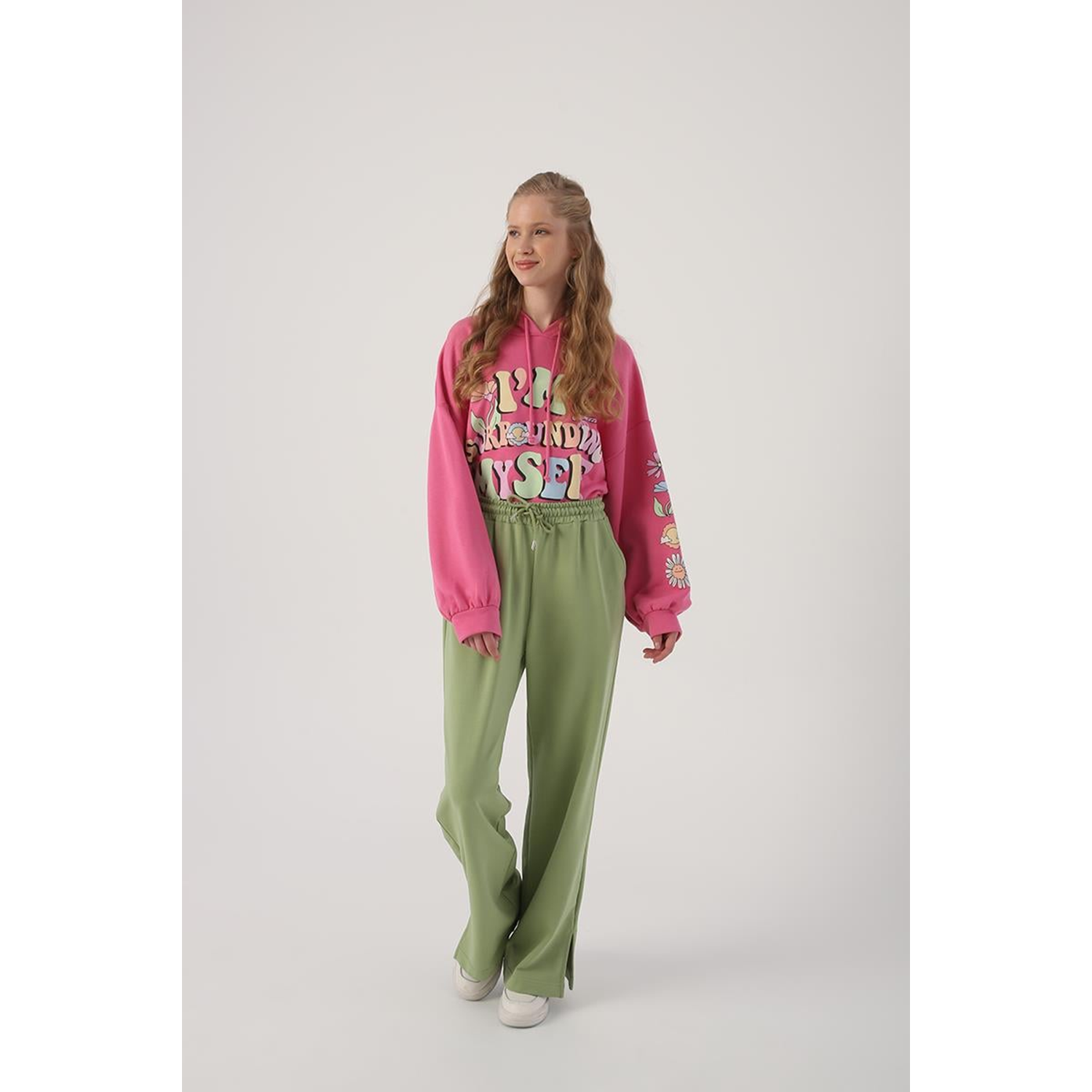 açık yeşil eşofman altı, bol paça eşofman, yırtmaçlı eşofman, rahat kalıp eşofman, pamuklu eşofman altı, lastikli bel eşofman, günlük eşofman, mevsimlik eşofman, kadın eşofman, %72 pamuk eşofman, bağcıklı eşofman