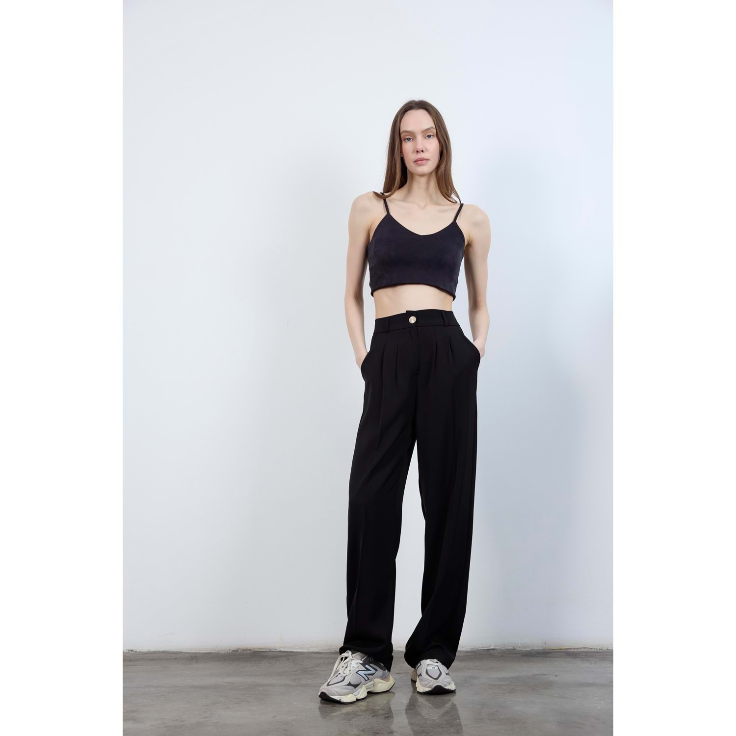 Özellikler: Yüksek bel, pileli kesim, rahat palazzo paça, arkası beli lastikli, kumaş.