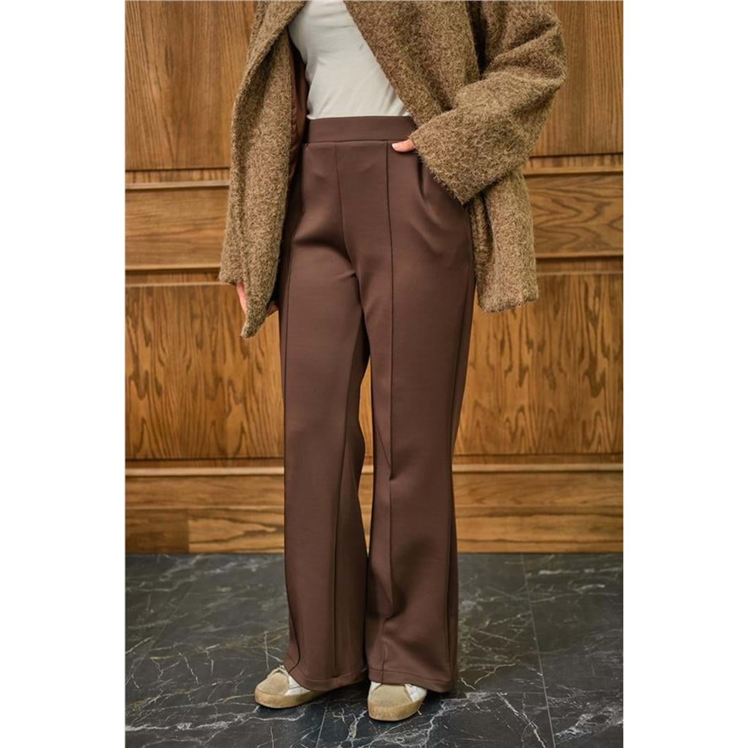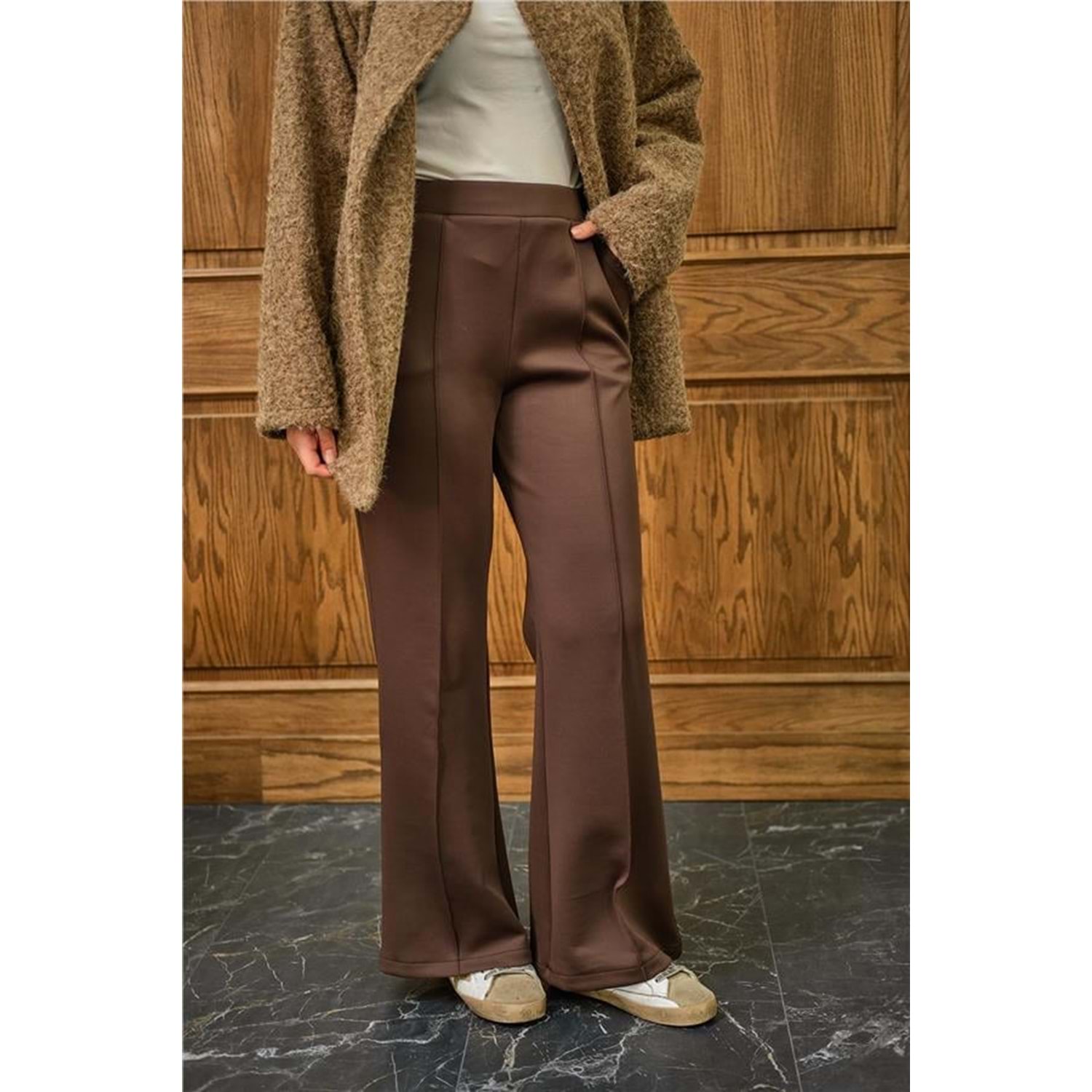 kahverengi scuba pantolon, biyeli pantolon S-M, taba rengi pantolon, kahve tesettür pantolon, yüksek bel kahve pantolon, pamuk Likra