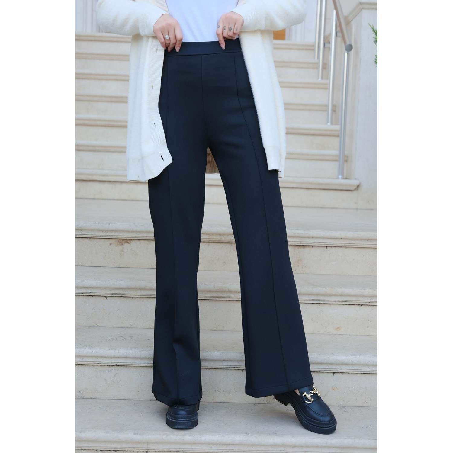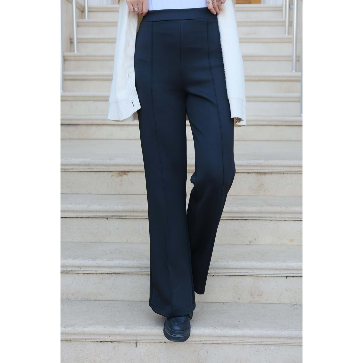 Bisqvi Biyeli Pamuklu Siyah Scuba Kadın Pantolon L-XL