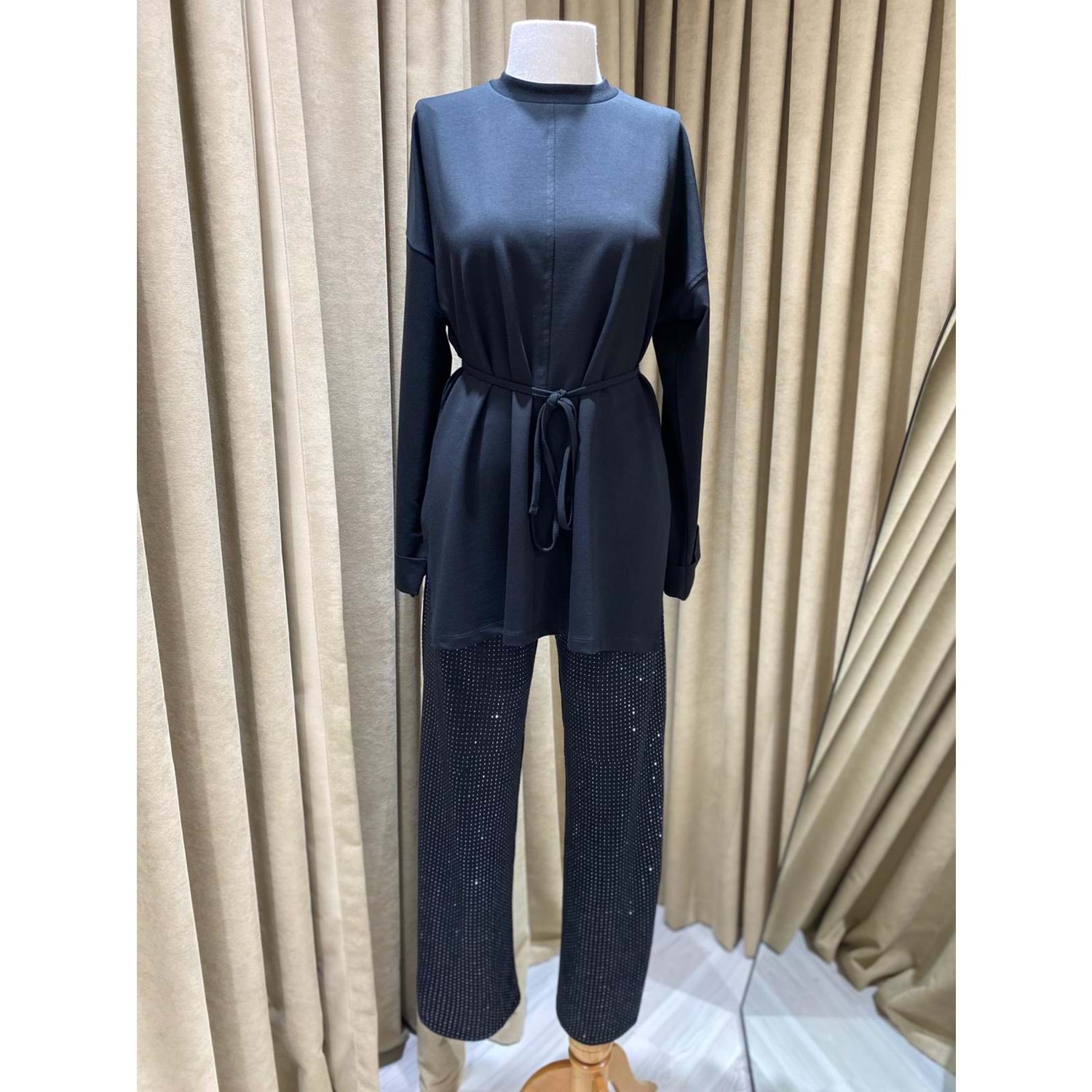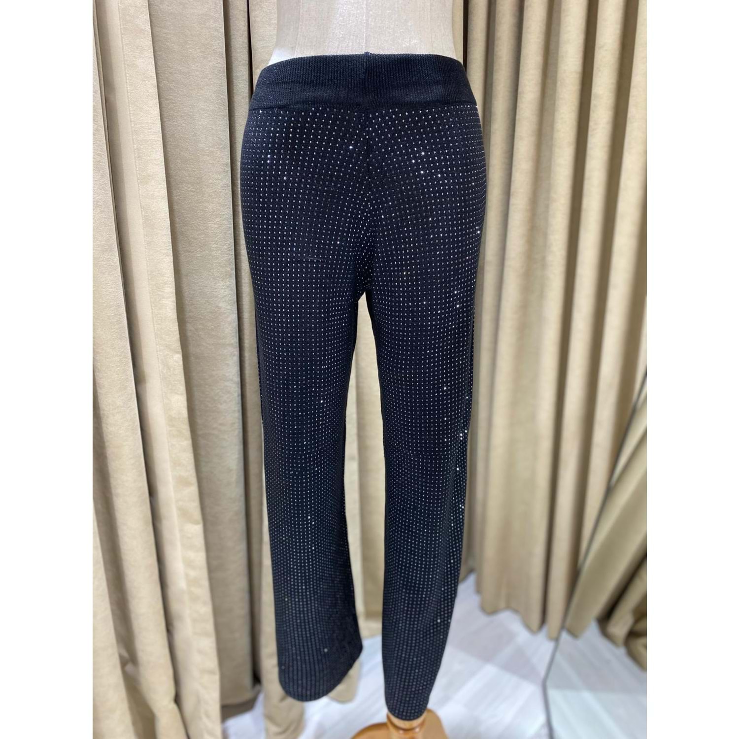 Triko Önü Taşlı Siyah Standart Kadın Pantolon