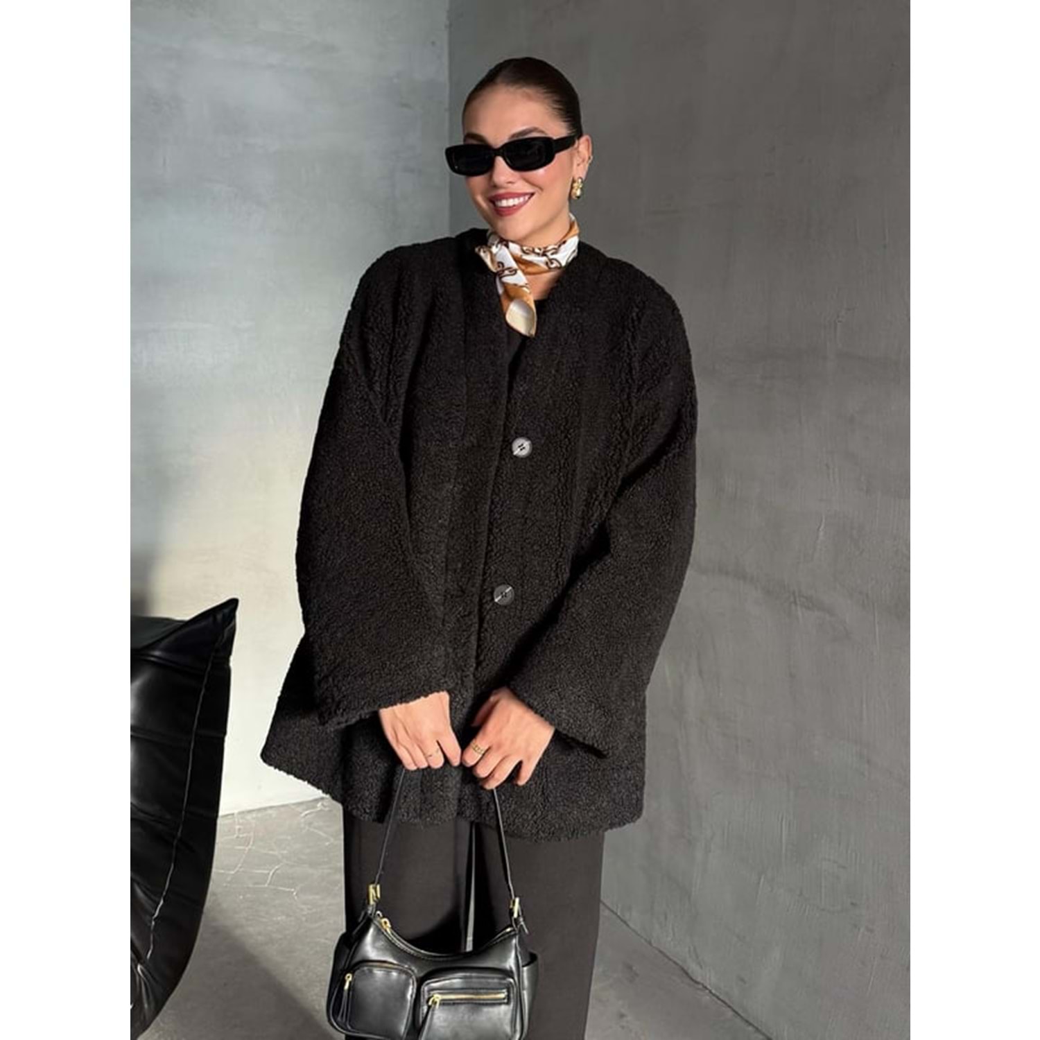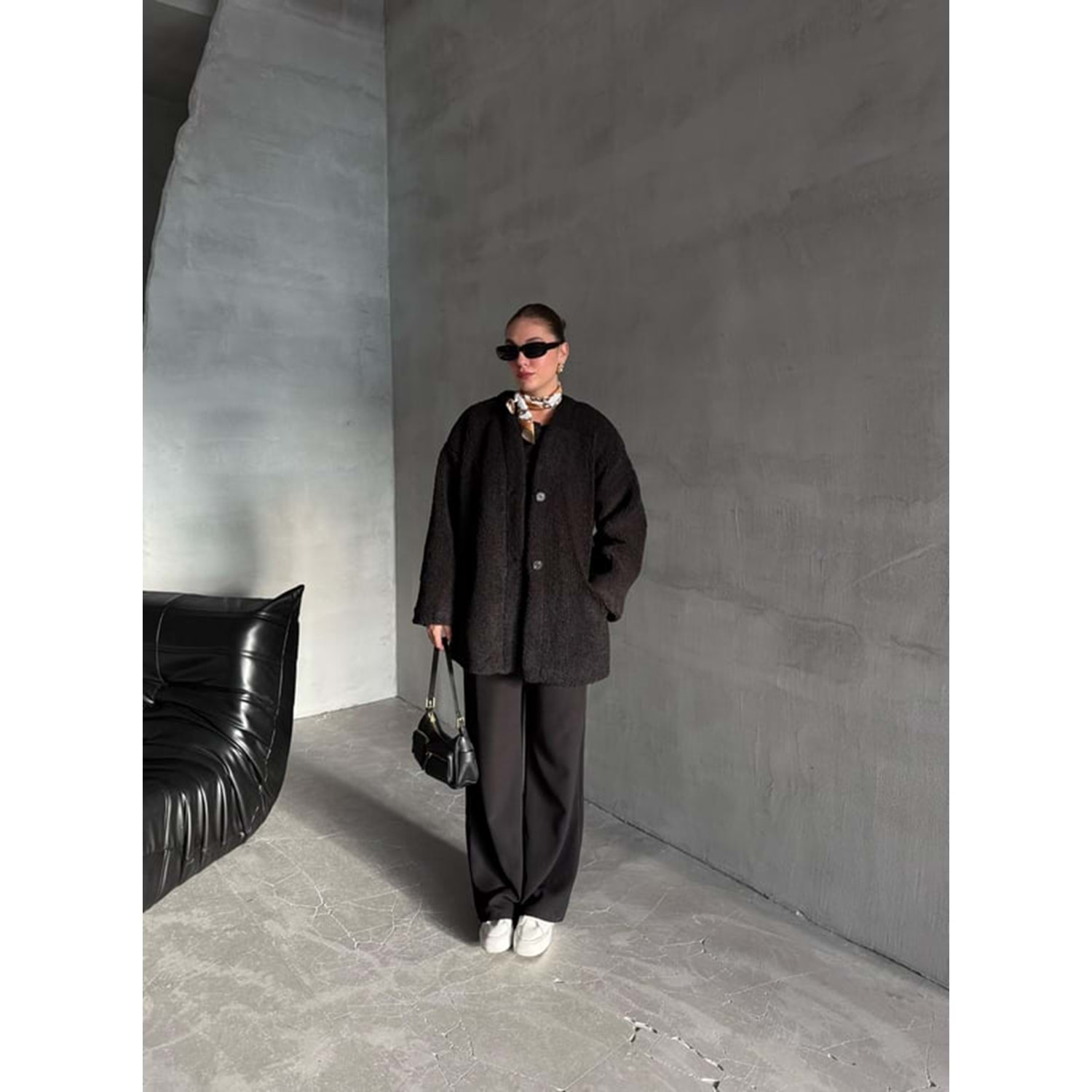 Klasik ve zamansız bir şıklık sunan Lilyum Düz Kesim Standart Siyah Bürümcük Ceket, dolapların vazgeçilmez parçası olacak. 73 cm boyu ve 60 cm eniyle standart beden formunda tasarlanan bu ürün, oversize kesimiyle rahat hareket imkanı sağlar.