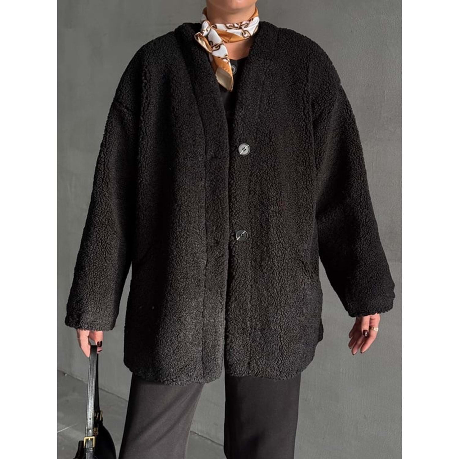 siyah bürümcük ceket, kadın siyah ceket, standart oversize ceket, düz kesim kadın siyah ceket, casual siyah ceket, bürümcük kumaş ceket