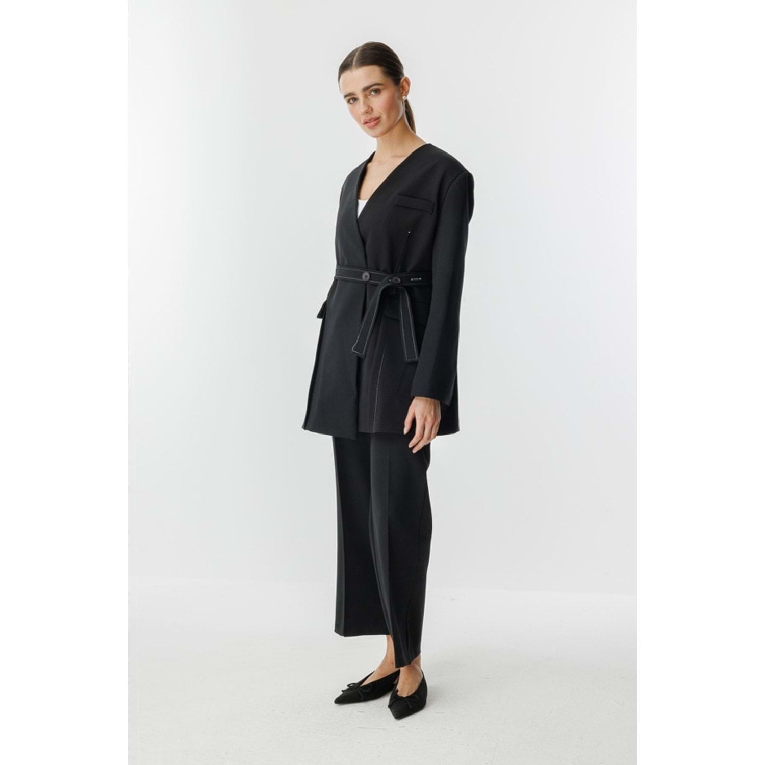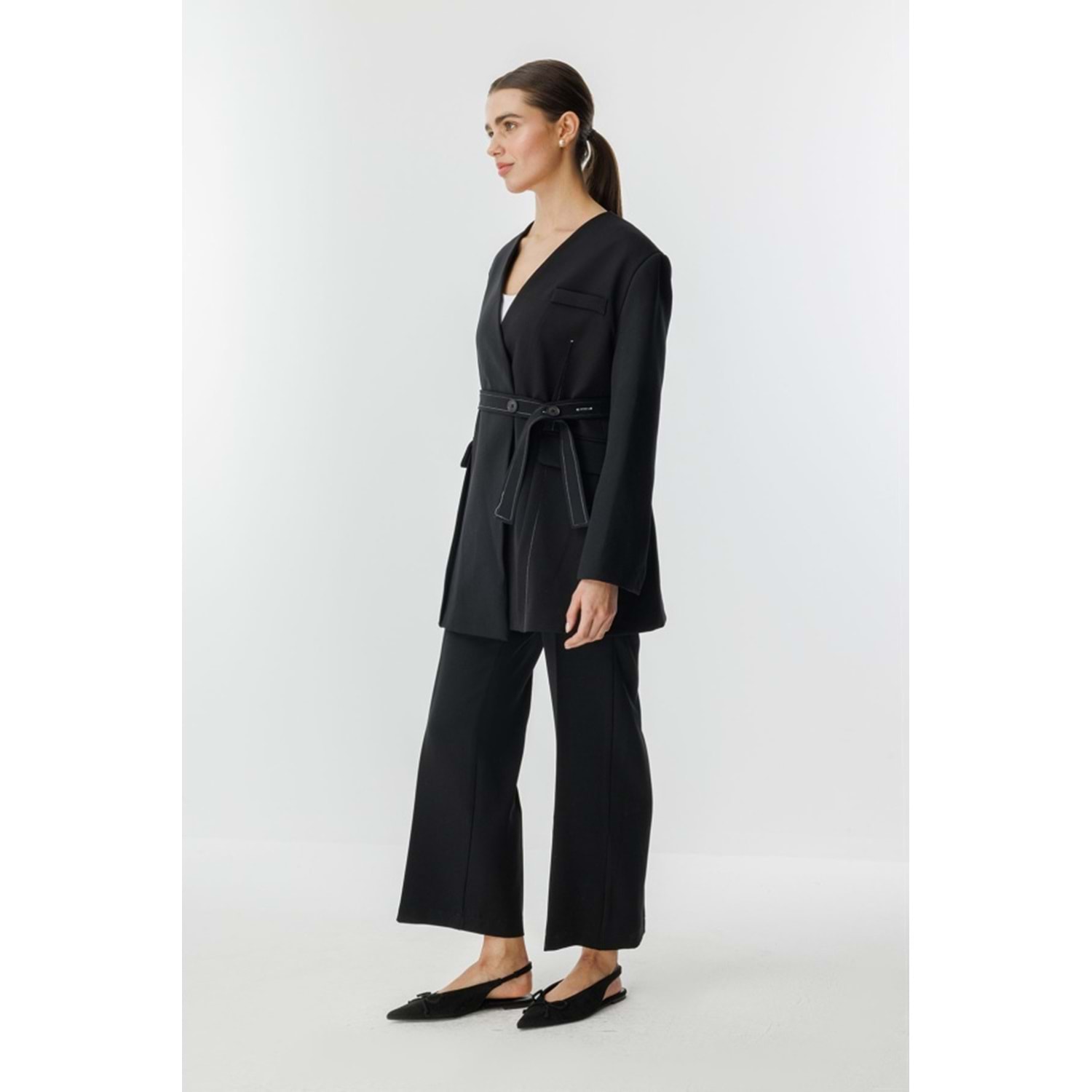 Kontrast Dikişli Kuşaklı Siyah Ceket M Beden