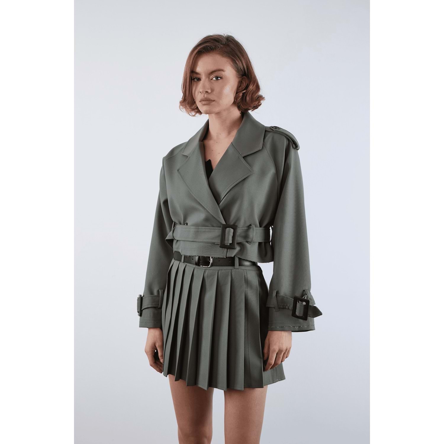 Stil sahibi görünümün anahtar parçası: Reglan Kısa Kadın Haki Ceket!