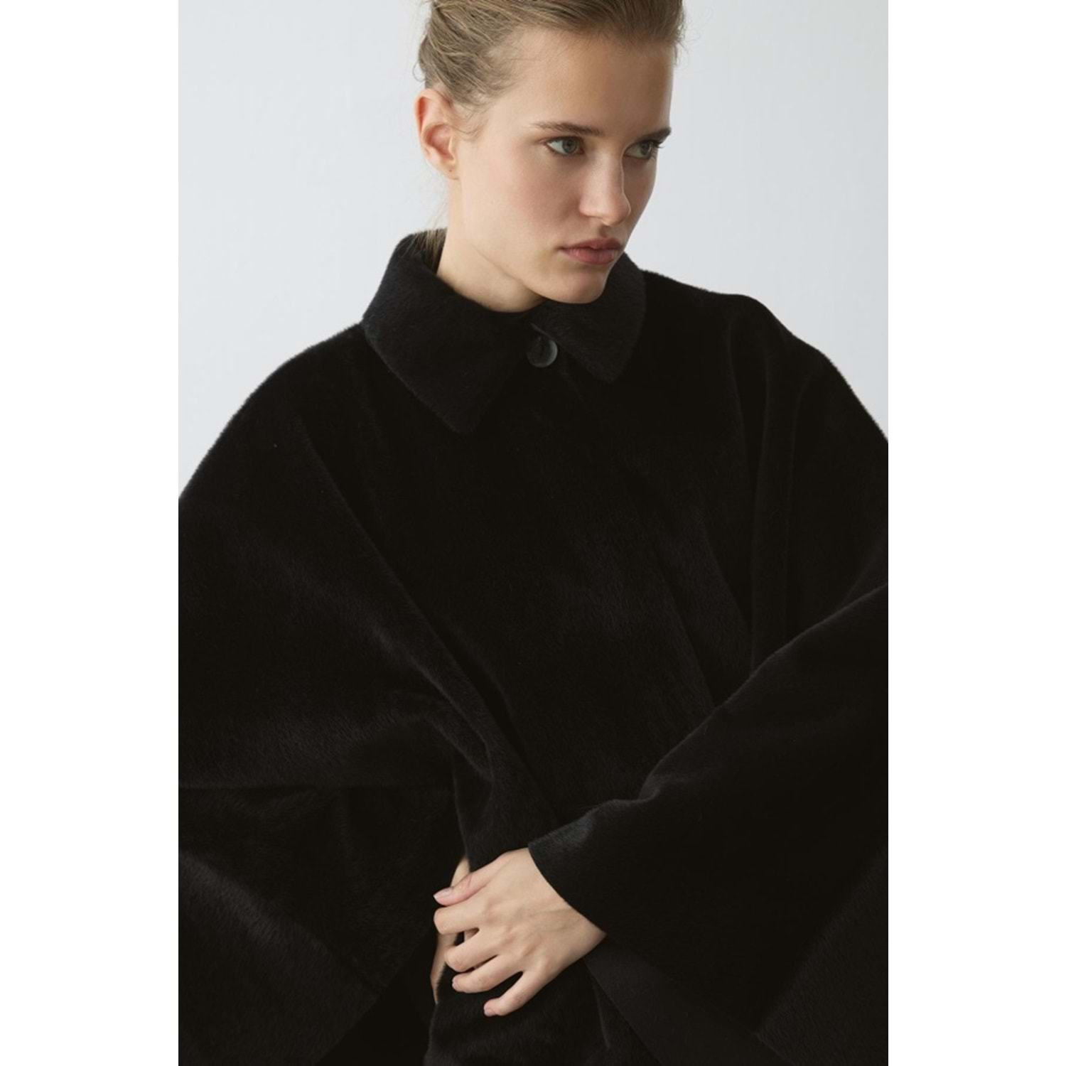 siyah pelerin kaban, klasik siyah ceket, oversize siyah pelerin, gömlek yaka kaban siyah, süet kemerli kaban, astarsız pelerin ceket, standart beden 38-42