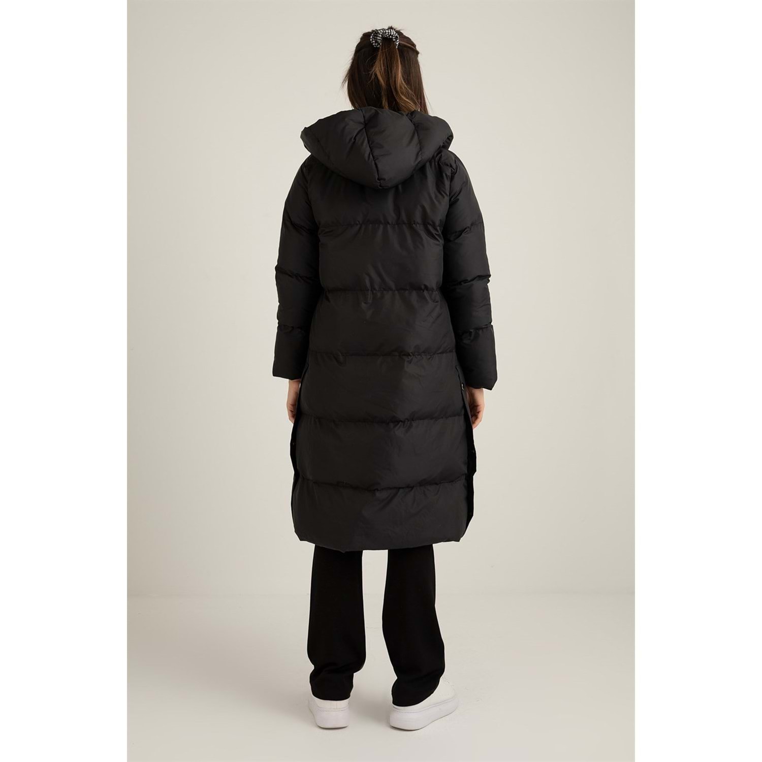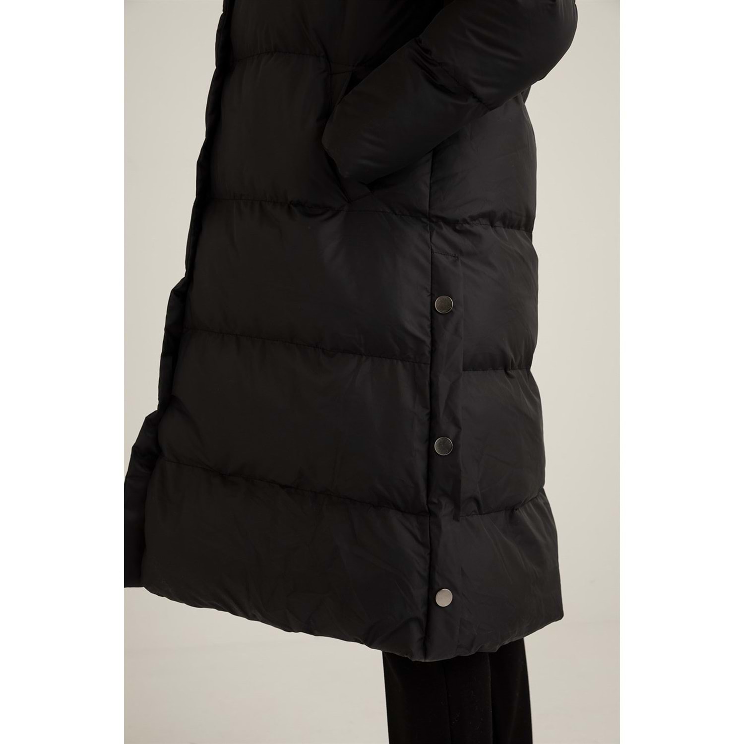 Çıtçıtlı Uzun Şişme Kadın Mont Siyah
