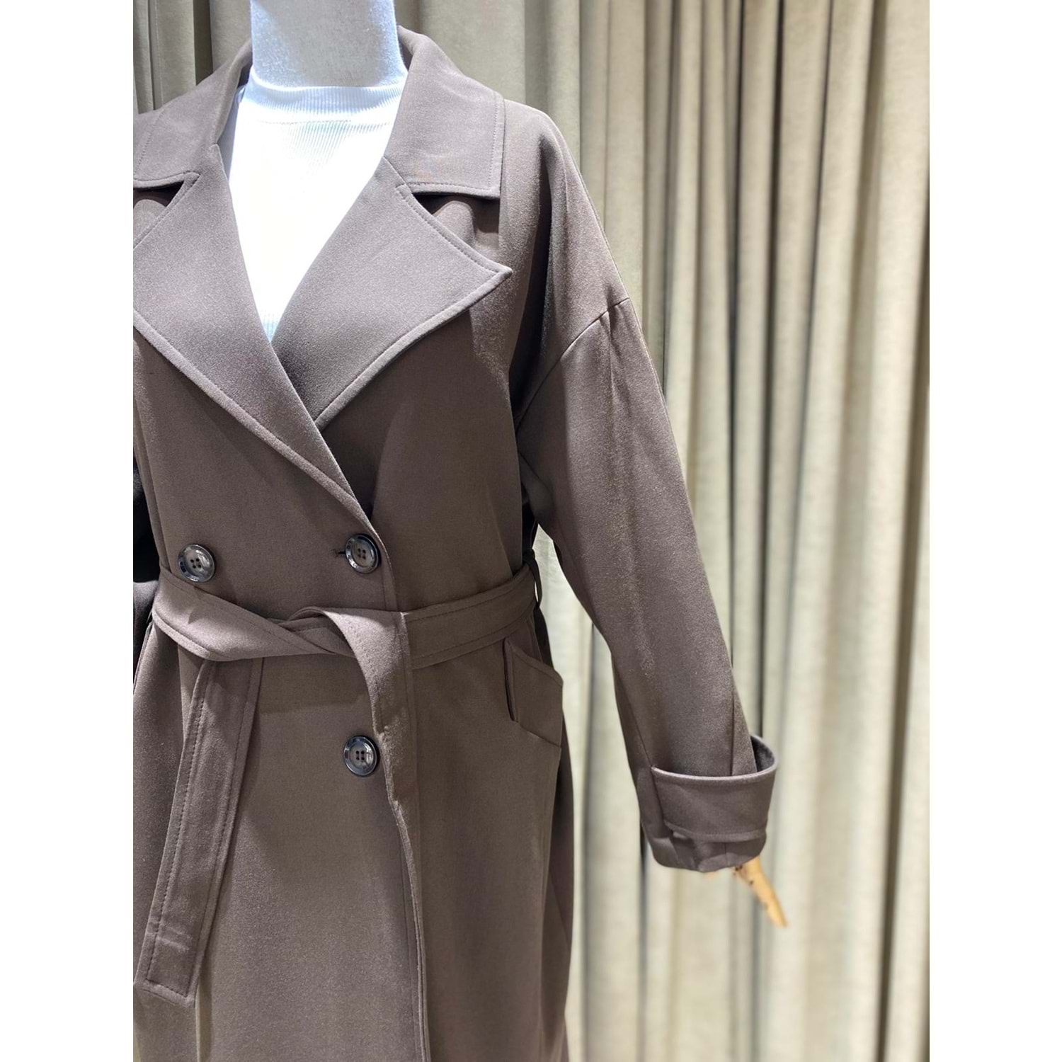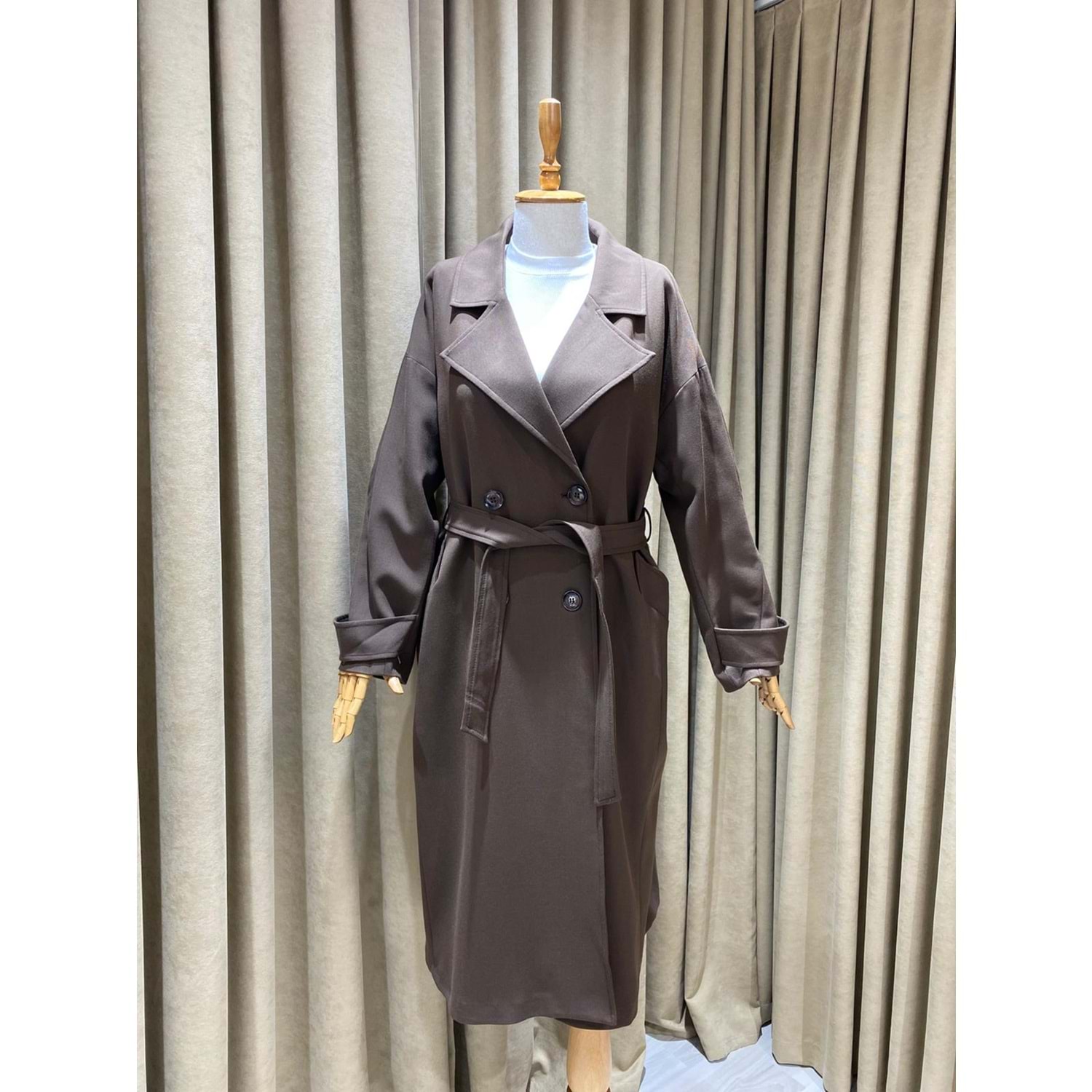 kahverengi trençkot, oversize kaban, kemerli midi kaban, çift düğmeli trençkot, ceket yaka dış giyim, standart beden trençkot, kışlık trençkot, moda, kaşe