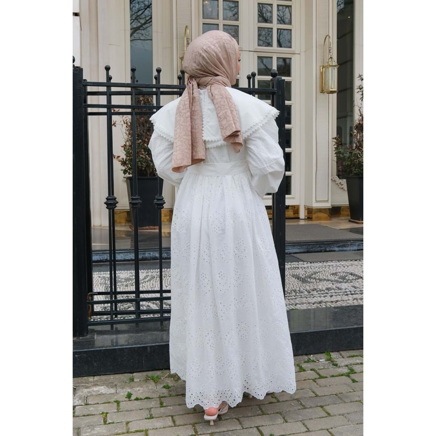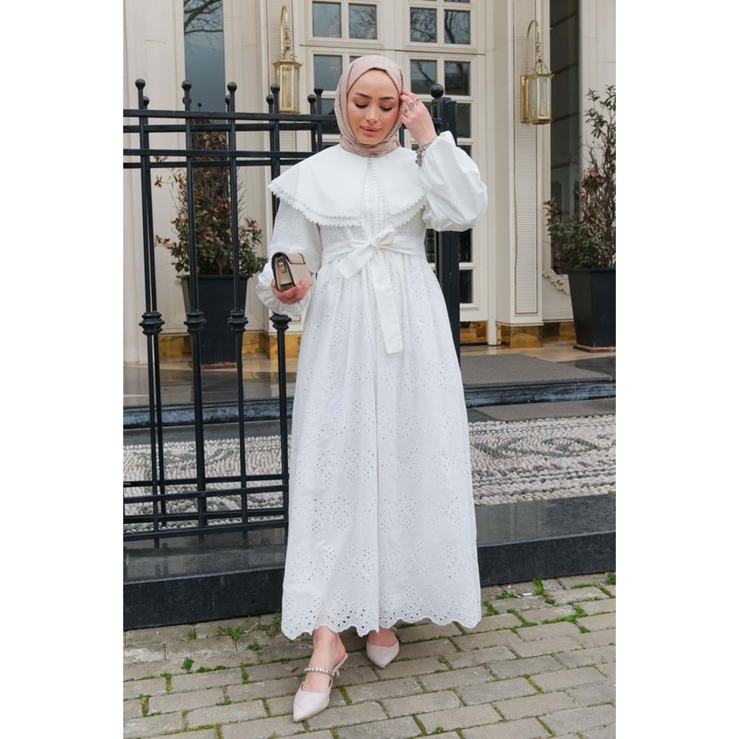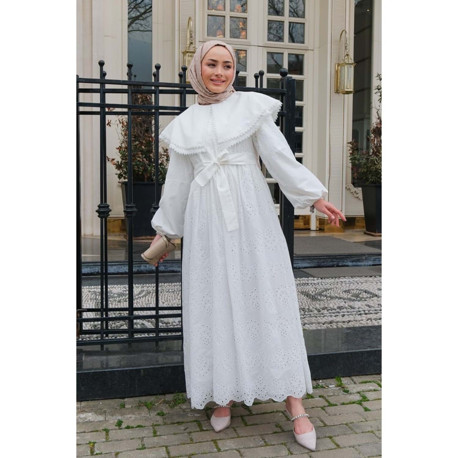 S beden beyaz elbise, dantel elbise, bebe yaka beyaz elbise, günlük davet elbisesi, yazlık şık elbise, 36 beden