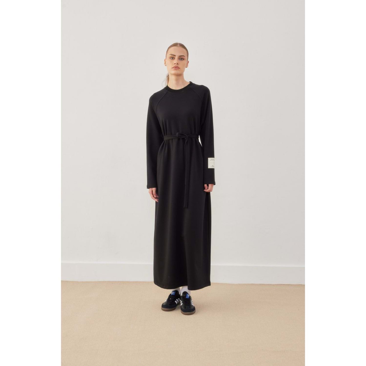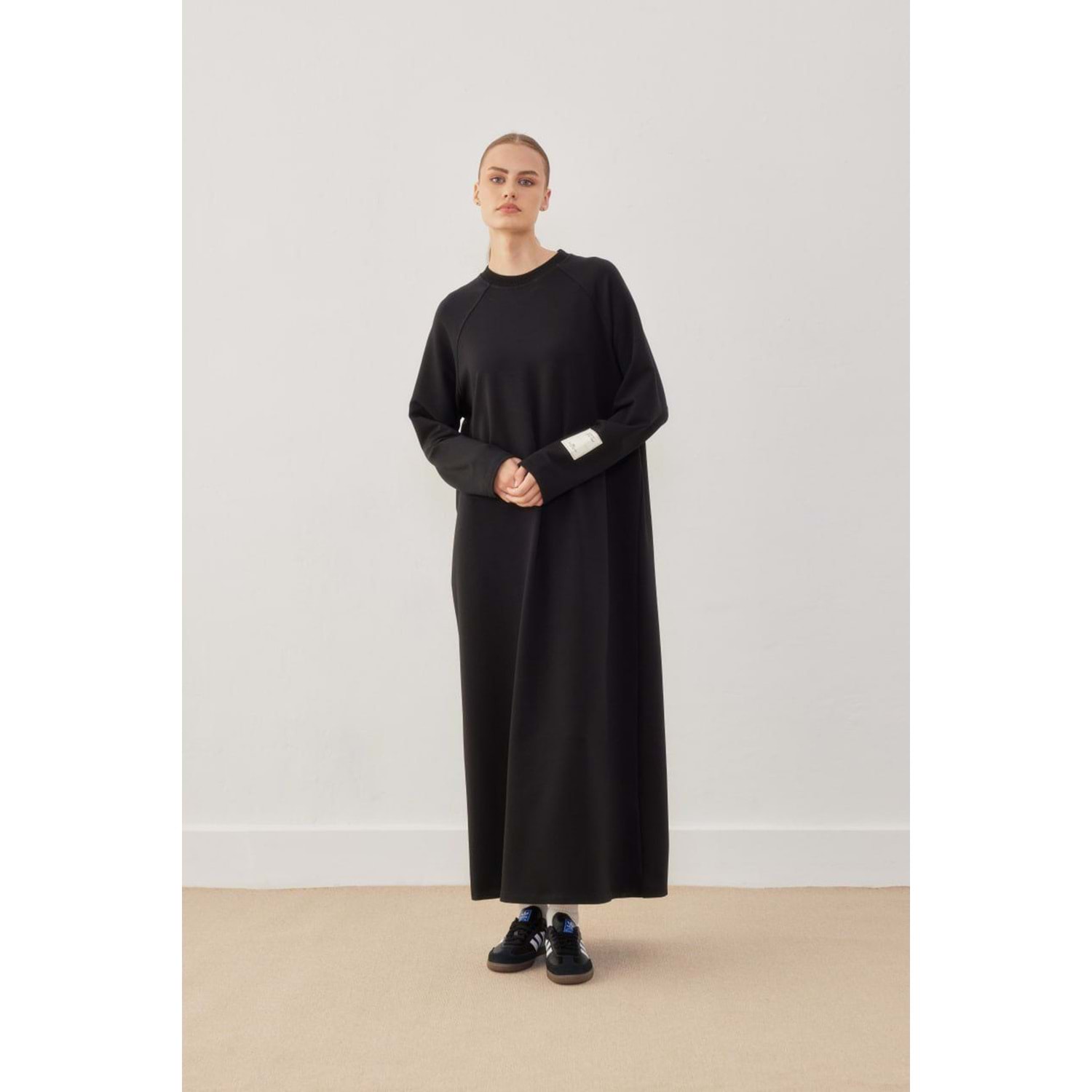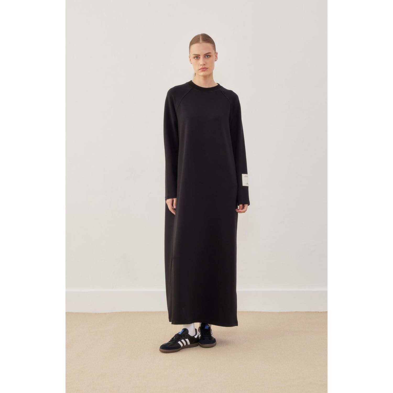Kol Etiket Detaylı Basic Siyah Elbise S/M