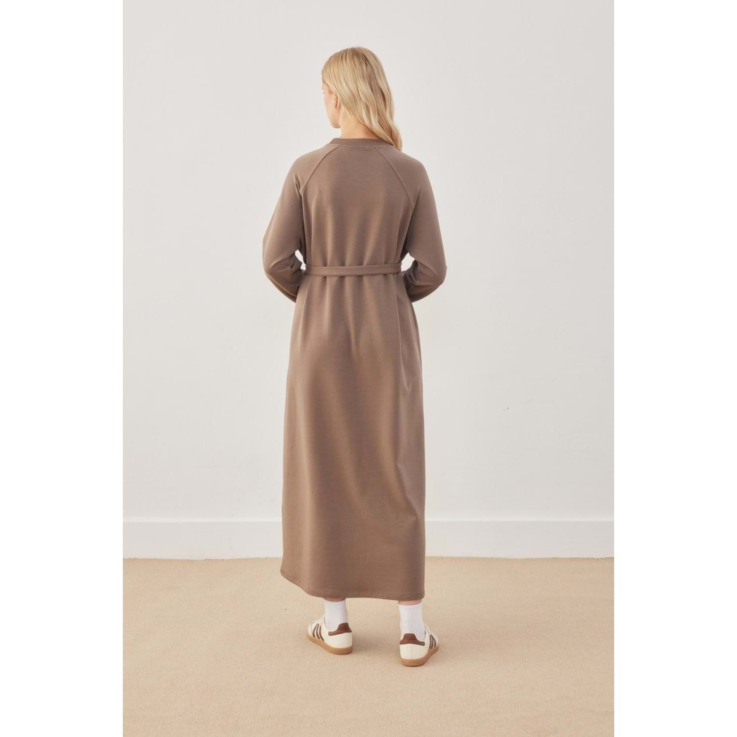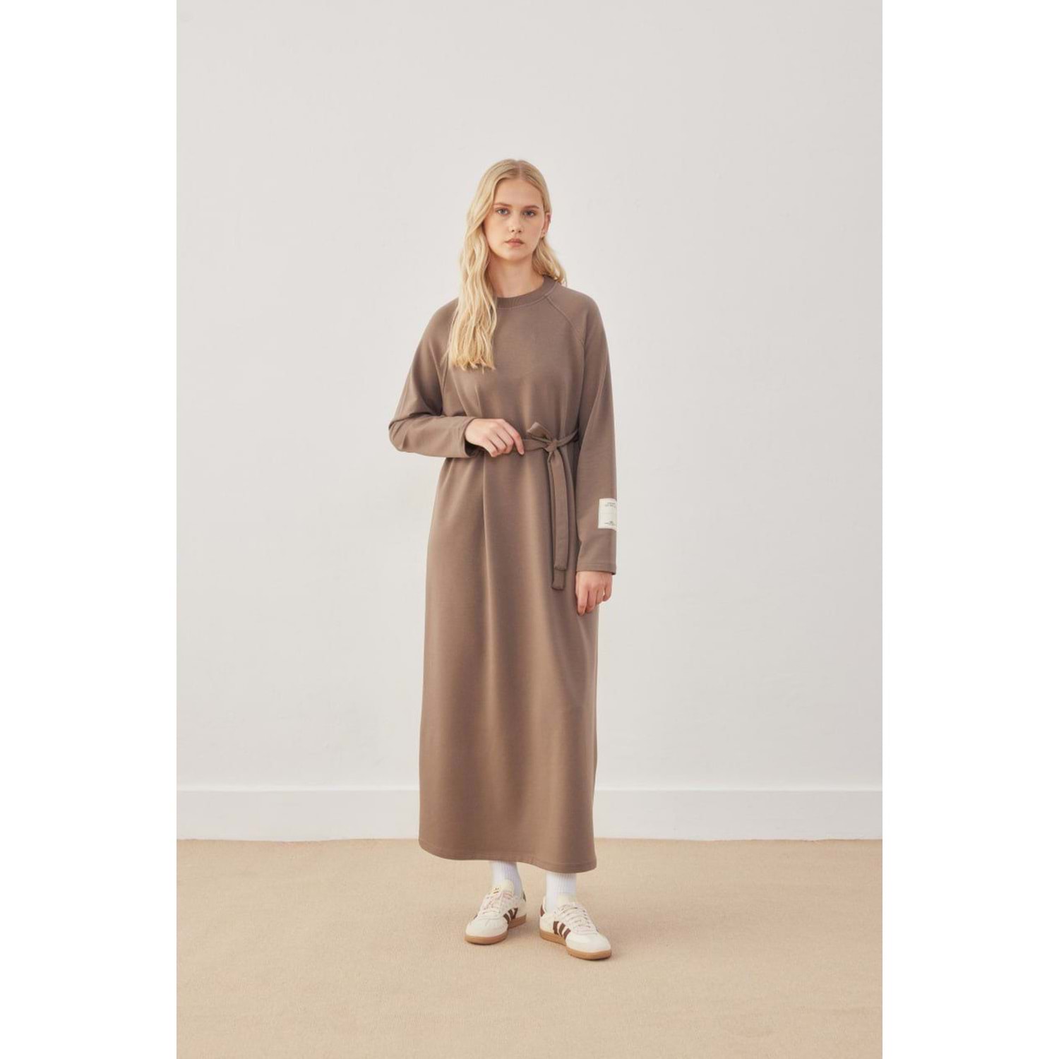 Kol Etiket Detaylı Basic Toprak Elbise M/L