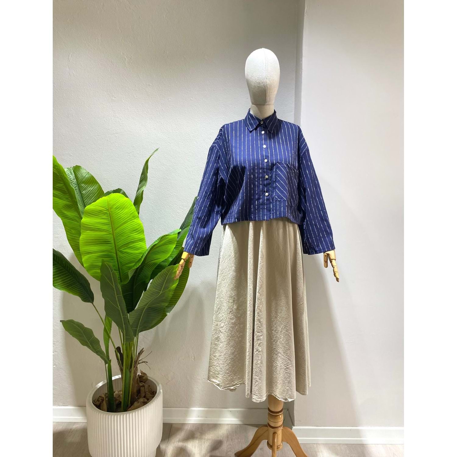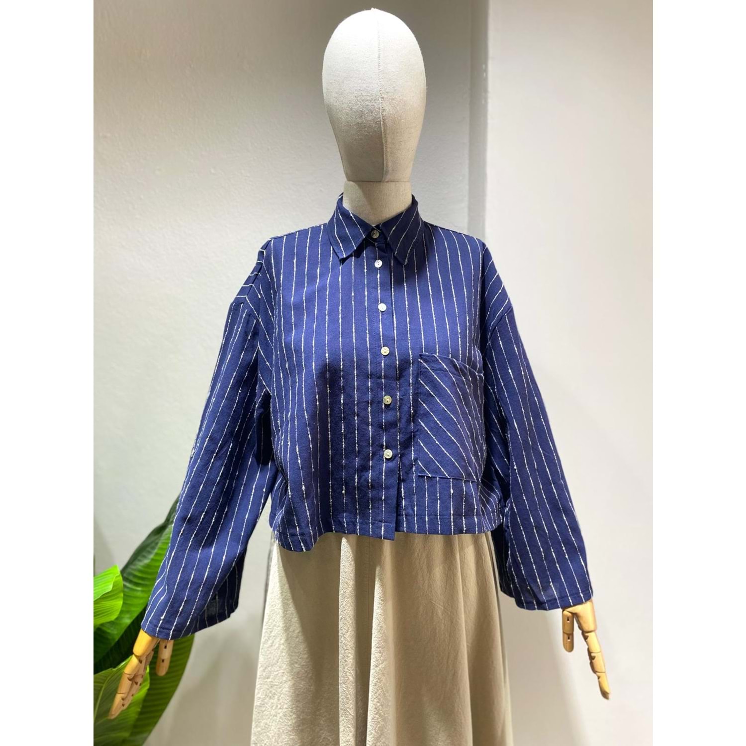 Doğal keten dokusu ve rahat kesimiyle öne çıkan çizgili crop gömlek, günlük şıklığı sevenler için ideal. Lacivert tonunun soft görünümü sayesinde her kombine kolayca uyum sağlar.