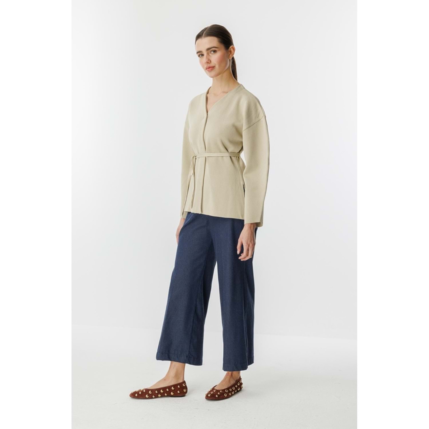 Bej Naye Merserize Hırka - Doğal ve Zarif Işık Nötr renklerin gücünü yansıtan Naye Bej Belden Oturtmalı Merserize Hırka, her türlü alt giyim ve aksesuarla kolayca kombinlenebilir. Zarif V yaka ve çıt çıt kapamalı ön detayı mevcuttur. Belden oturtmalı kesimiyle vücuda tam oturur ve fit bir görünüm sağlar. Seyyar kemeri ve yan yırtmaçları ile hareket katarken, düşük omuzlu tam kalıbı ile konforludur.