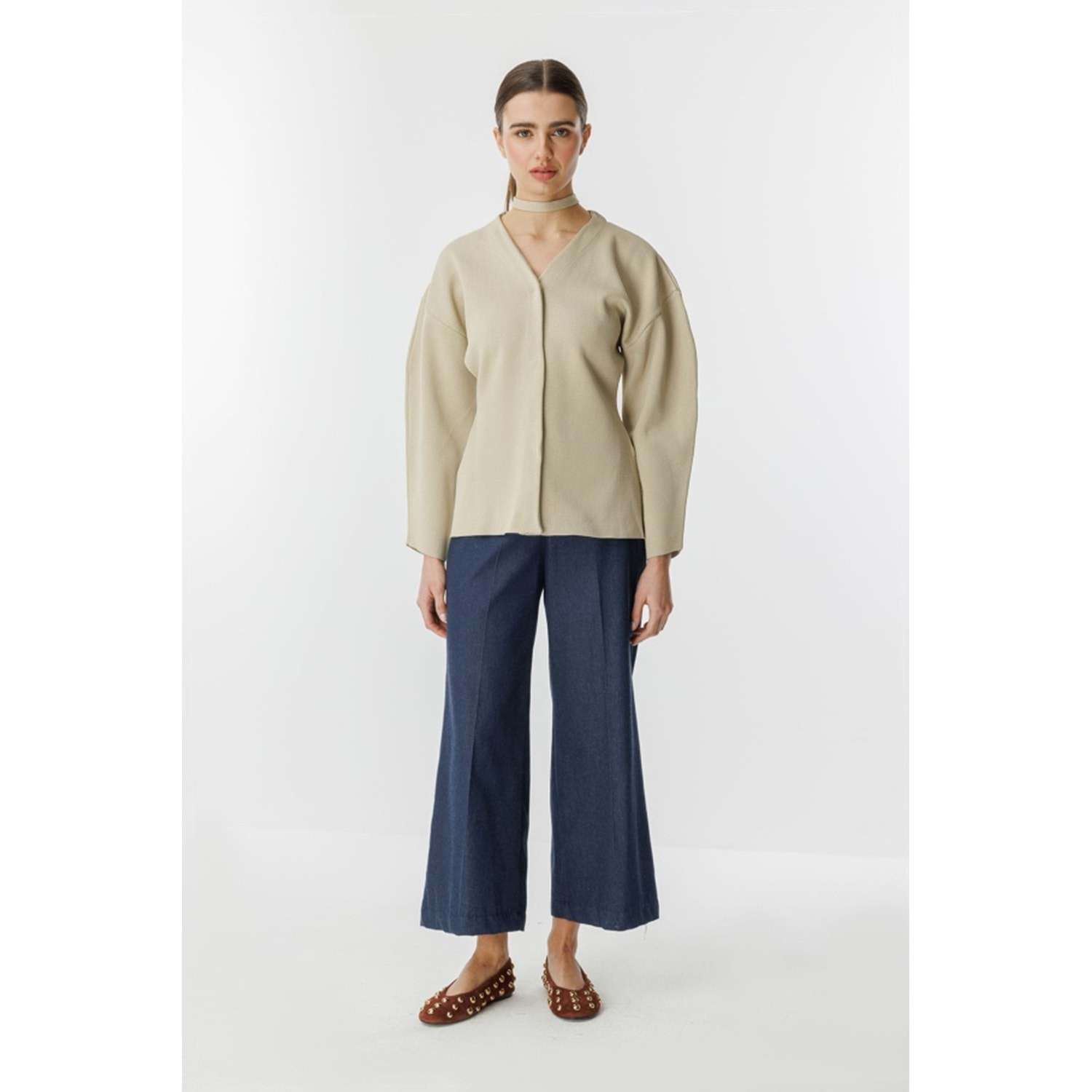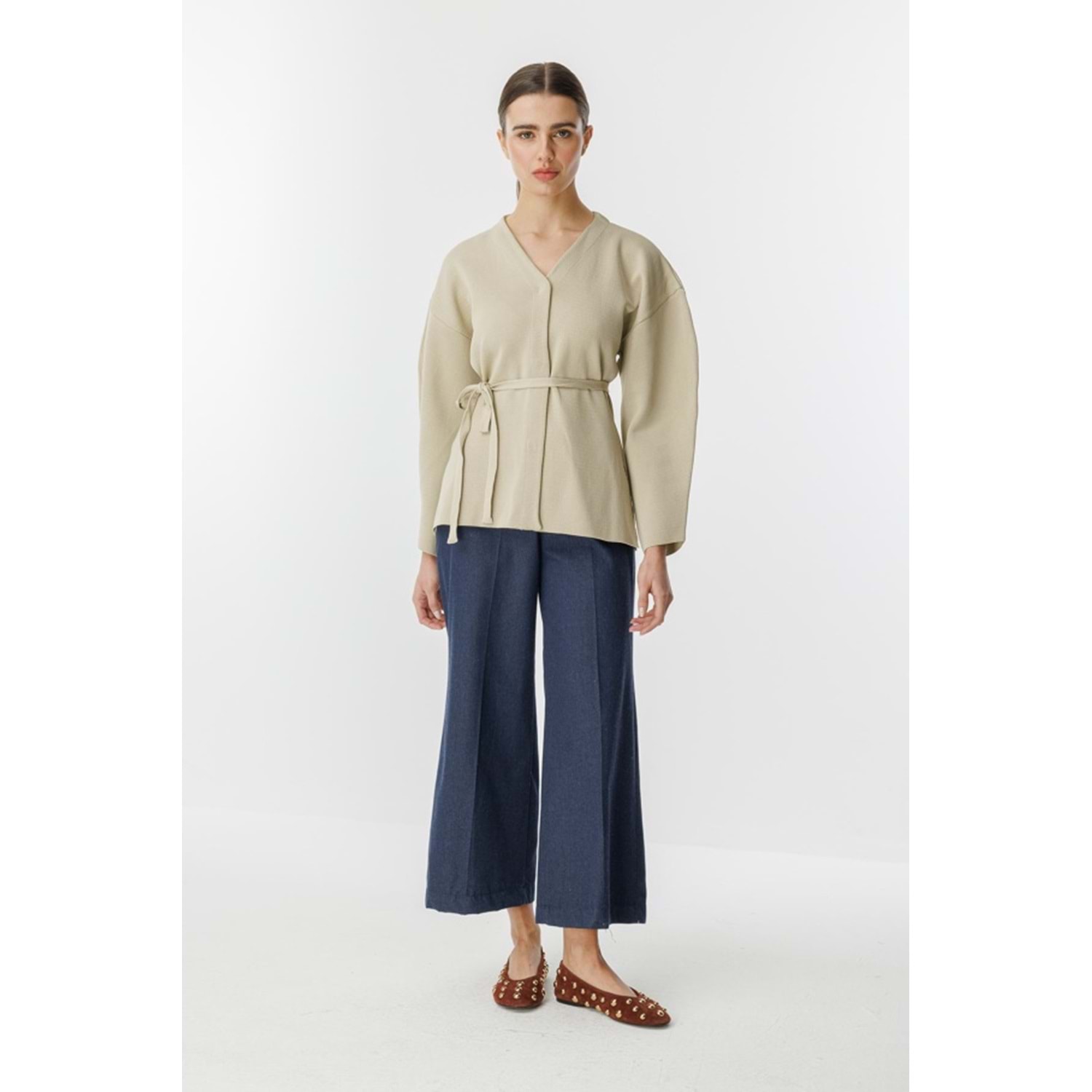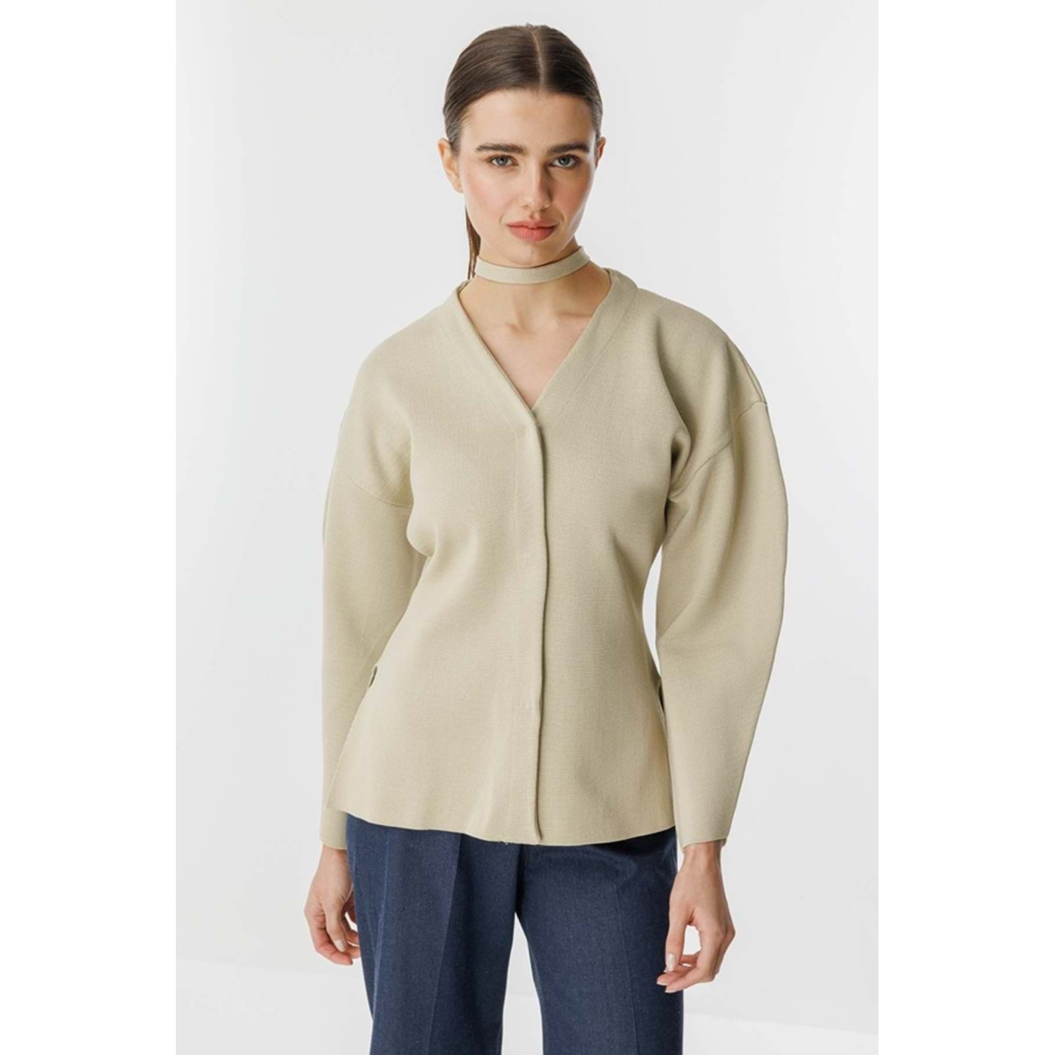 Bej Naye Merserize Hırka - Doğal ve Zarif Işık Nötr renklerin gücünü yansıtan Naye Bej Belden Oturtmalı Merserize Hırka, her türlü alt giyim ve aksesuarla kolayca kombinlenebilir. Zarif V yaka ve çıt çıt kapamalı ön detayı mevcuttur. Belden oturtmalı kesimiyle vücuda tam oturur ve fit bir görünüm sağlar. Seyyar kemeri ve yan yırtmaçları ile hareket katarken, düşük omuzlu tam kalıbı ile konforludur.