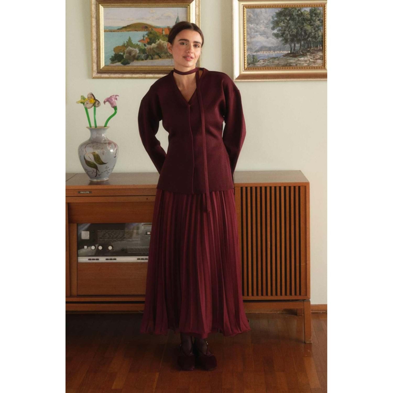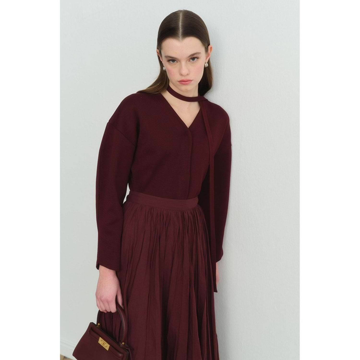 bordo hırka, vişne çürüğü hırka, merserize triko, belden oturtmalı, kemerli hırka, V yaka, bordo S, bordo M, bordo L