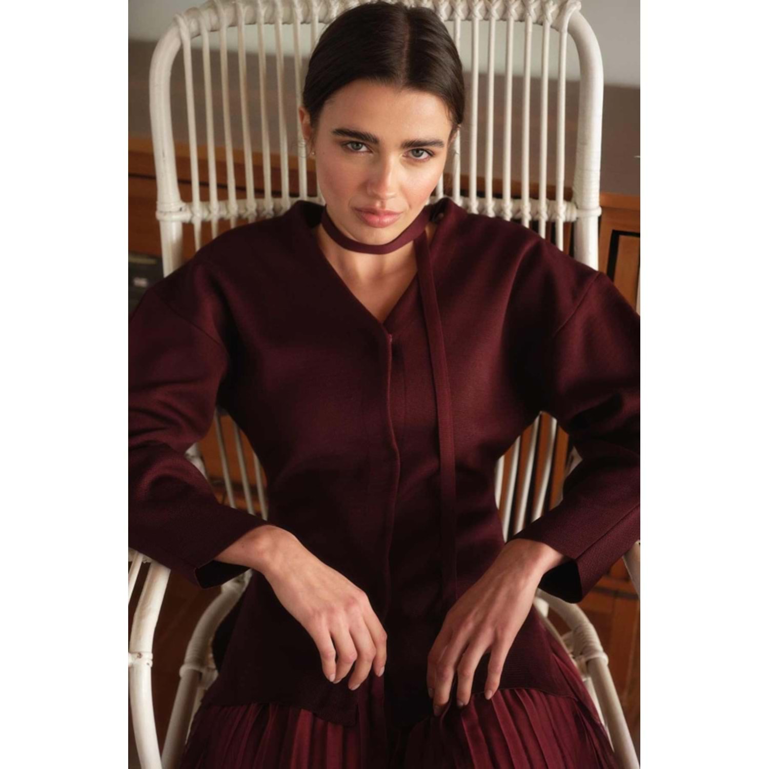 Derin ve zengin bir tona sahip Naye Bordo Belden Oturtmalı Merserize Hırka, kombininize sıcaklık ve sofistike bir hava katar. V yaka, önden renge renk çıt çıt kapamalı tasarımıyla pratik ve şıktır. Belden oturtmalı tam kalıbı ile vücudunuzu zarifçe sarar. Yanlardan yırtmaçlar, kendi kumaşından seyyar kemer ve düşük omuz detayı ile stilinizi bir üst seviyeye taşır.