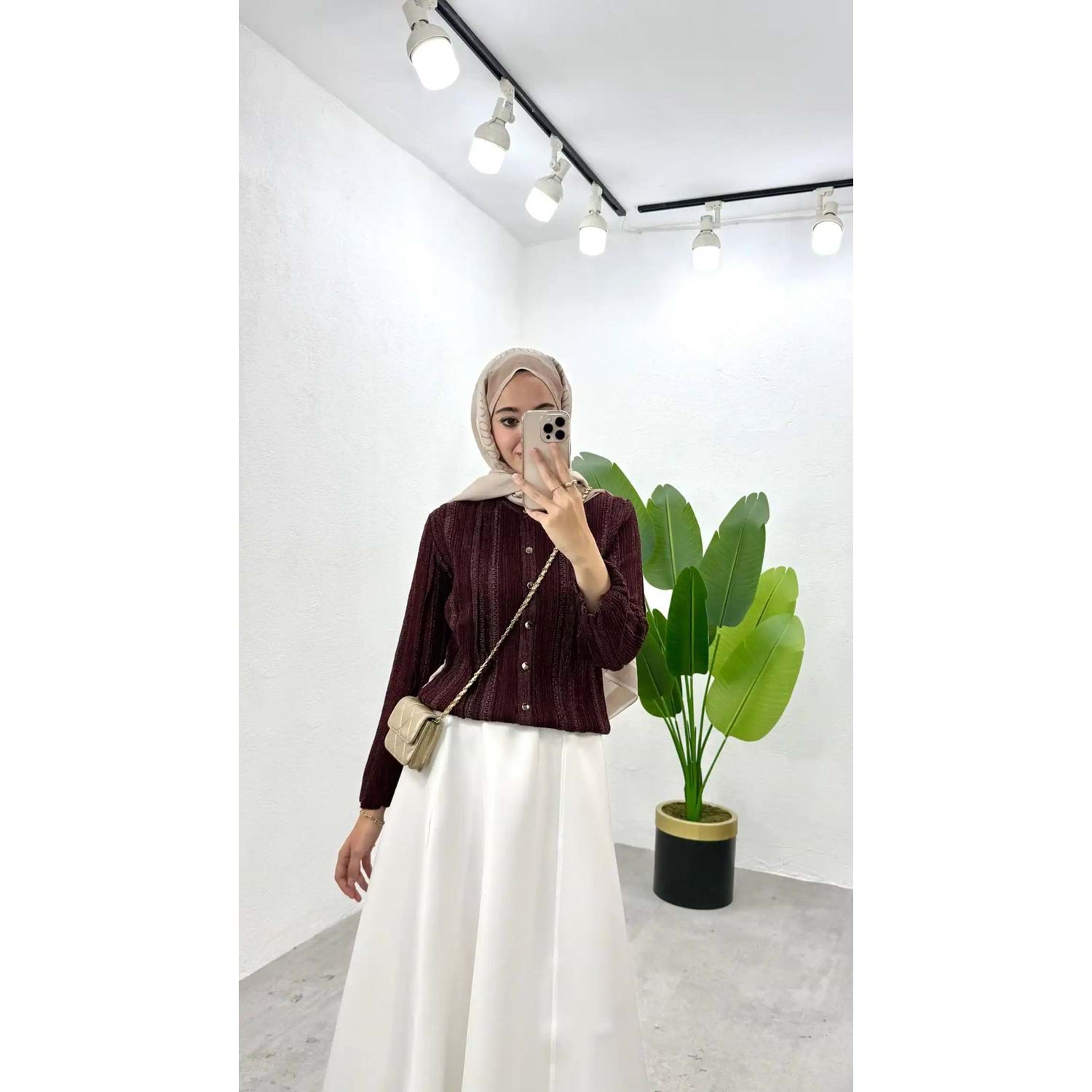 Simli Gold Düğmeli Triko Mürdüm Hırka