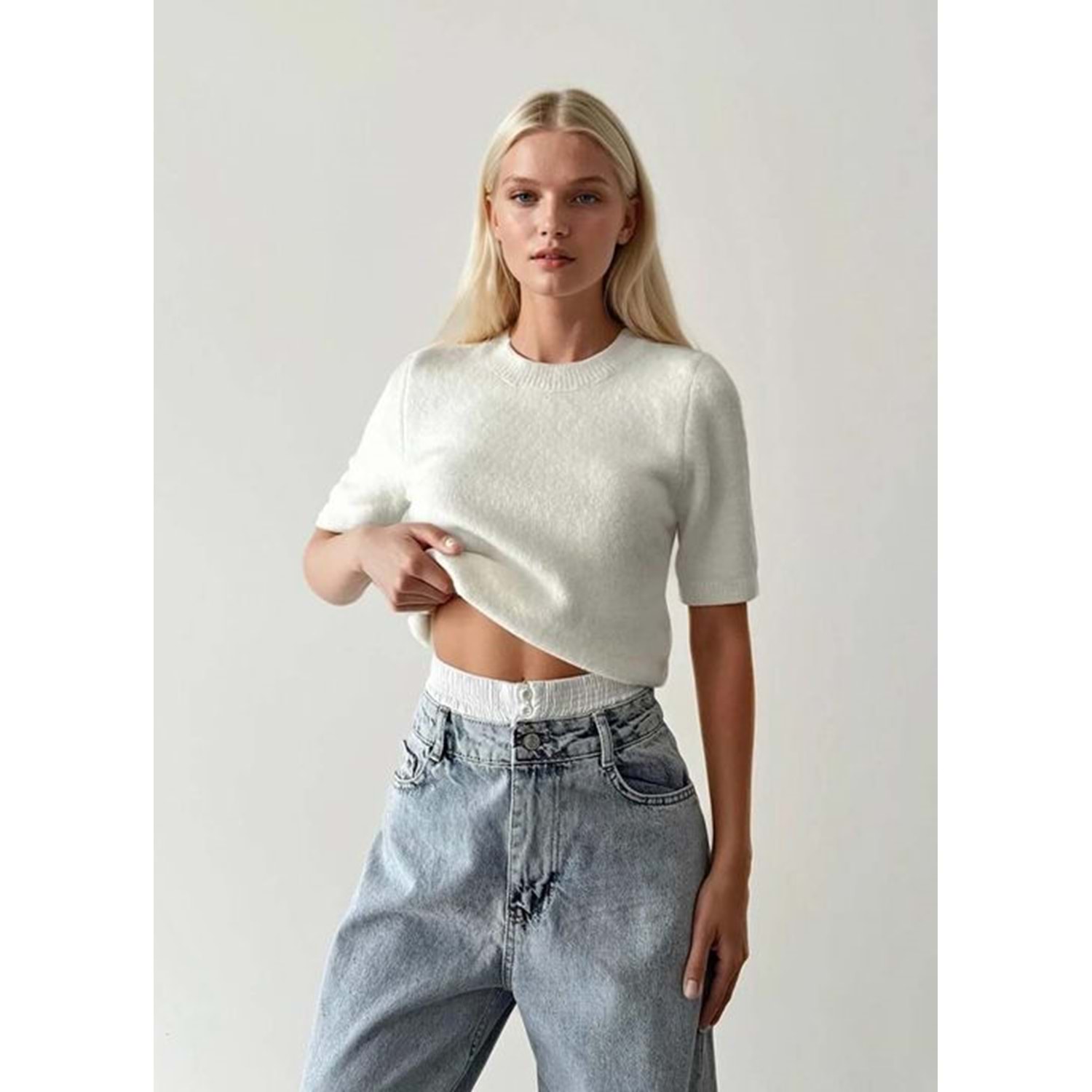 kısa kollu kazak, akrilik polyester kazak, örgü kazak, kadın kazak, kışlık crop, vizon kazak
