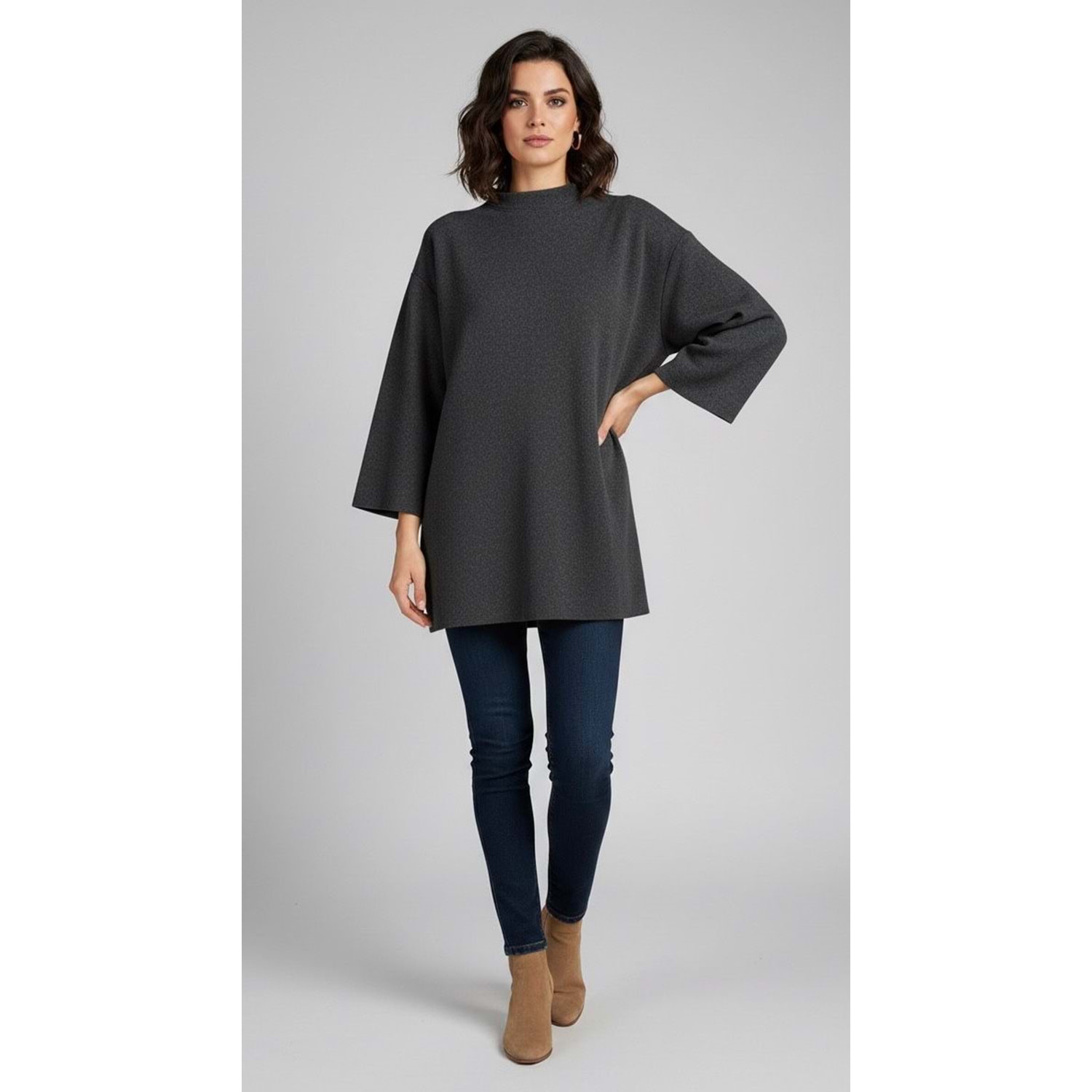antrasit kaşe kazak L/XL, büyük beden kazak, kaşe dokulu tunik, uzun kaşe kazak, gri tunik, bol kesim kazak, kış modası, şık ve sıcak kazak, dökümlü model, kaşe kumaş