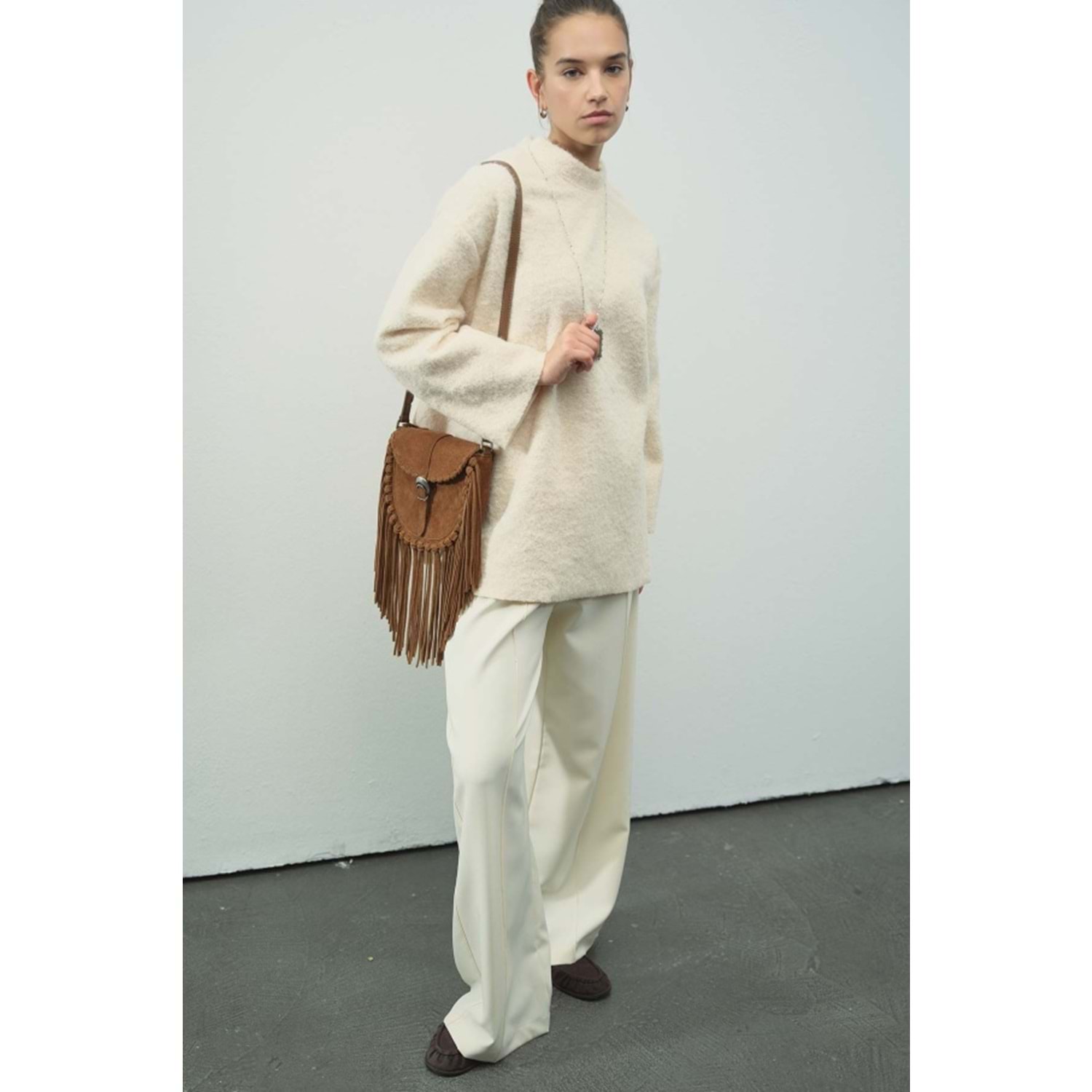 ekru melanj kazak L/XL, büyük beden triko, yüksek yaka kışlık kazak, oversize ekru kazak, melanj L/XL, dökümlü kazak, salaş triko L/XL