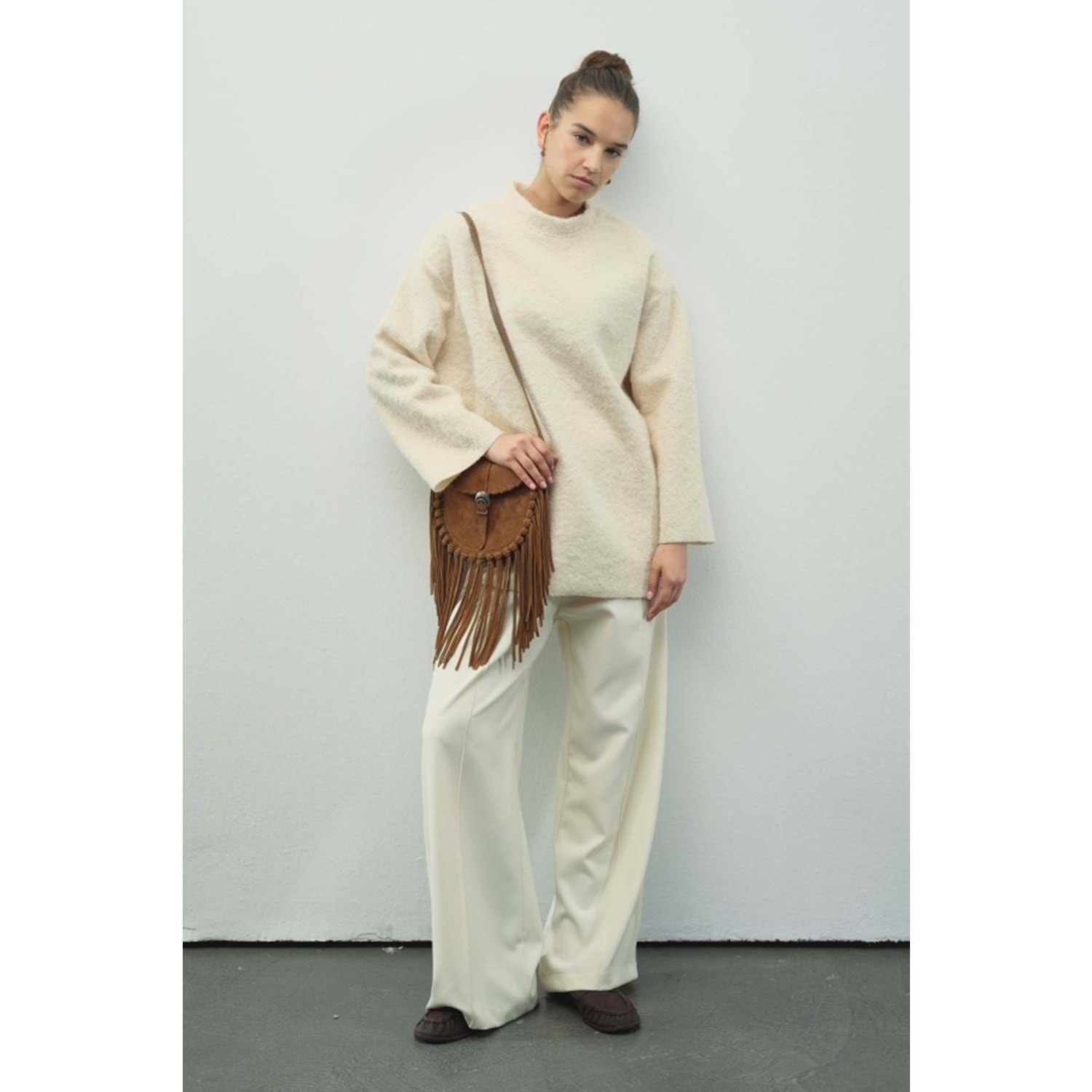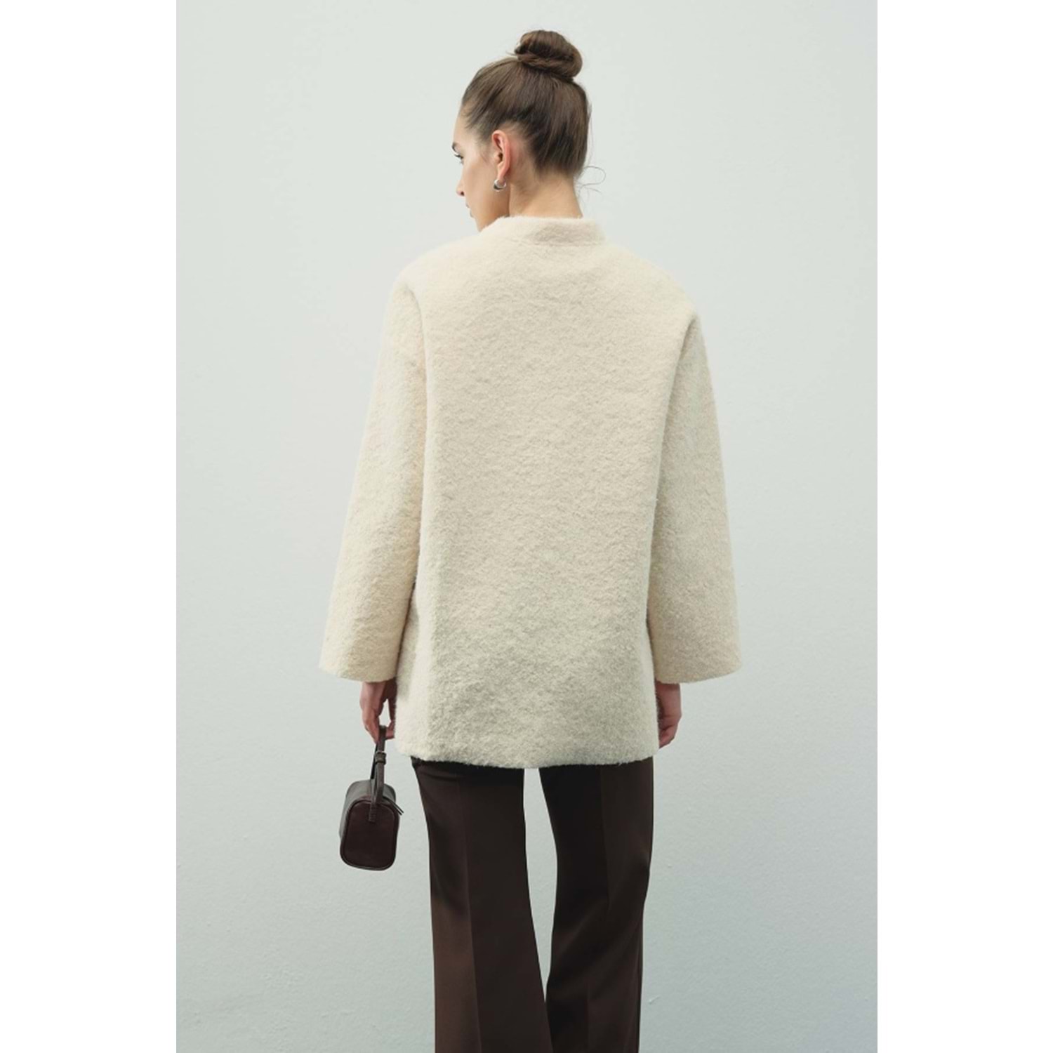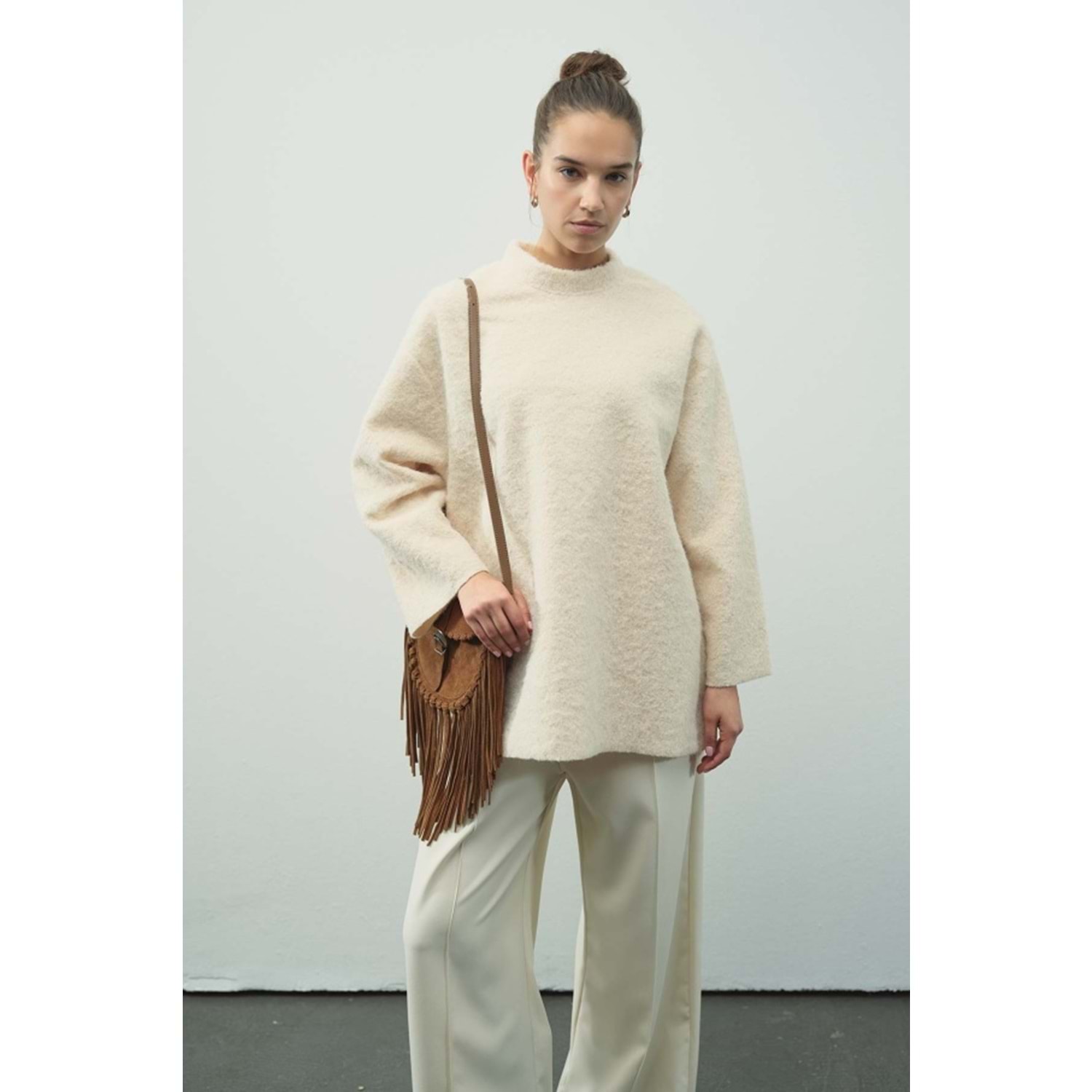 Ürün Detayları: Rahat ve dökümlü melanj dokulu kumaş. Yüksek yaka, uzun kollu tasarım.