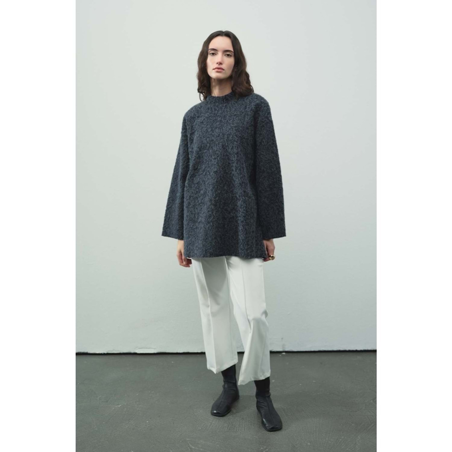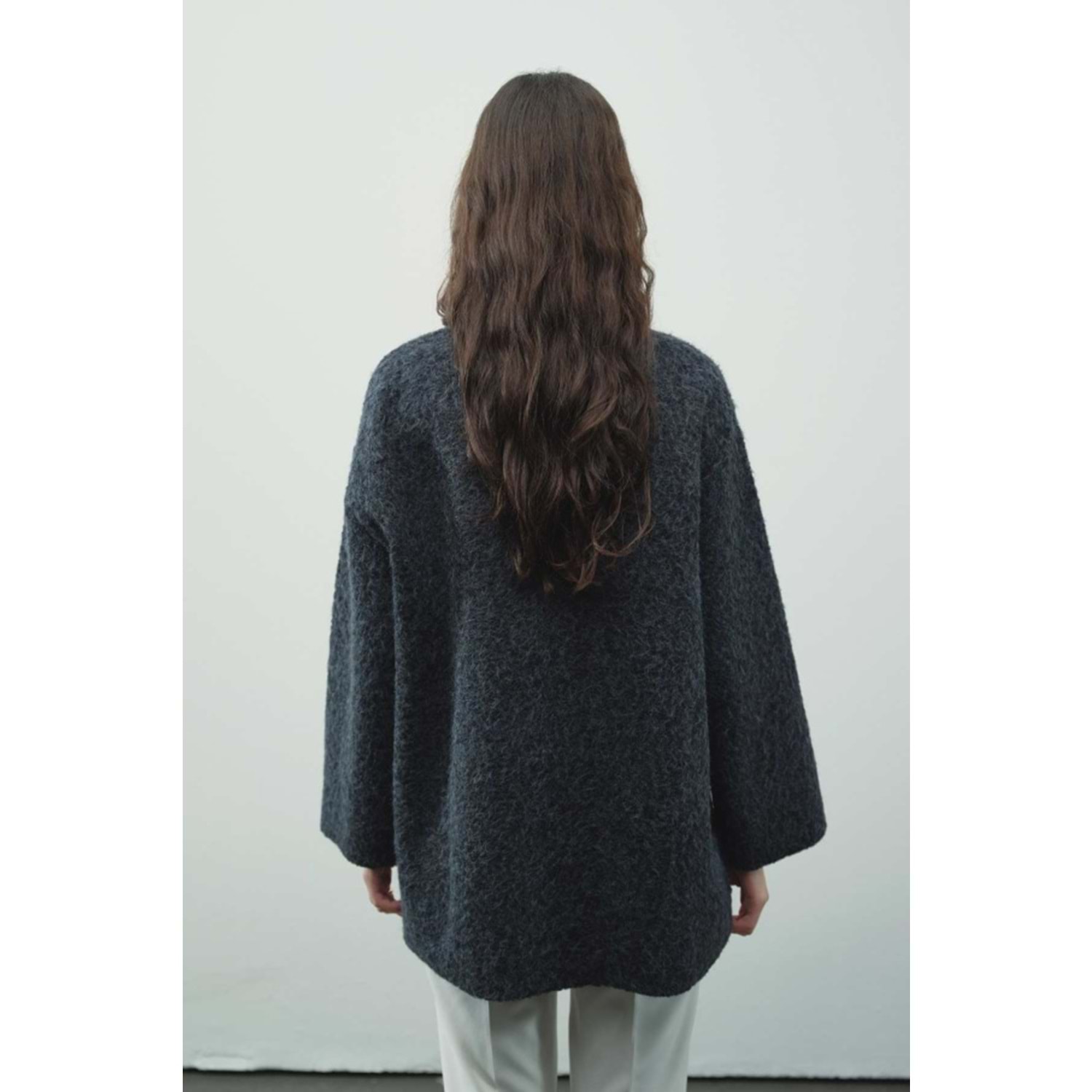 Ürün Detayları: Rahat ve dökümlü melanj dokulu kumaş. Yüksek yaka, uzun kollu tasarım.
