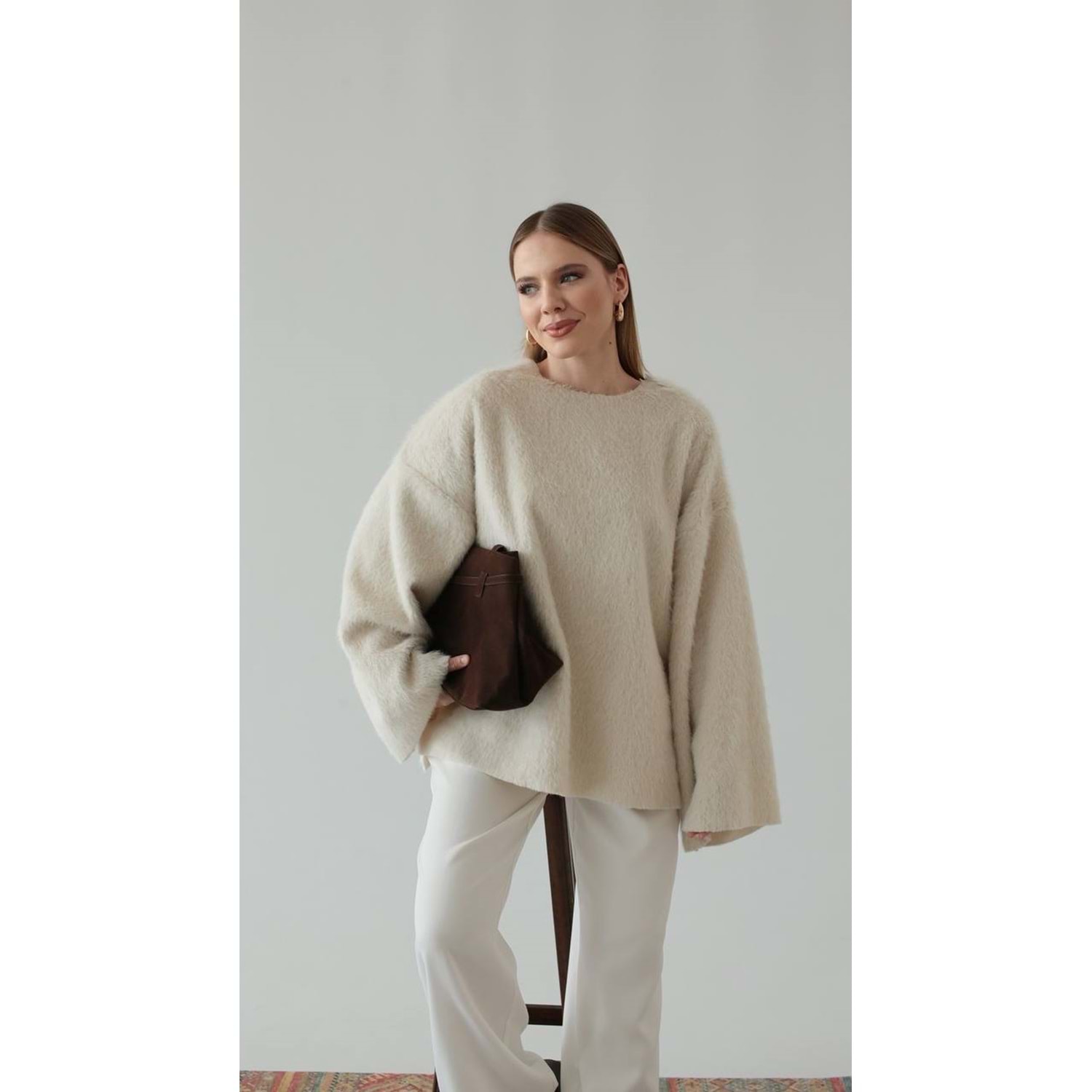 Bej Peluş Sweatshirt, Sakallı Sweat, Tek Beden, Kışlık Sweatshirt, Yumuşak Üst Giyim, Standart Beden Sweat, Oversize Peluş