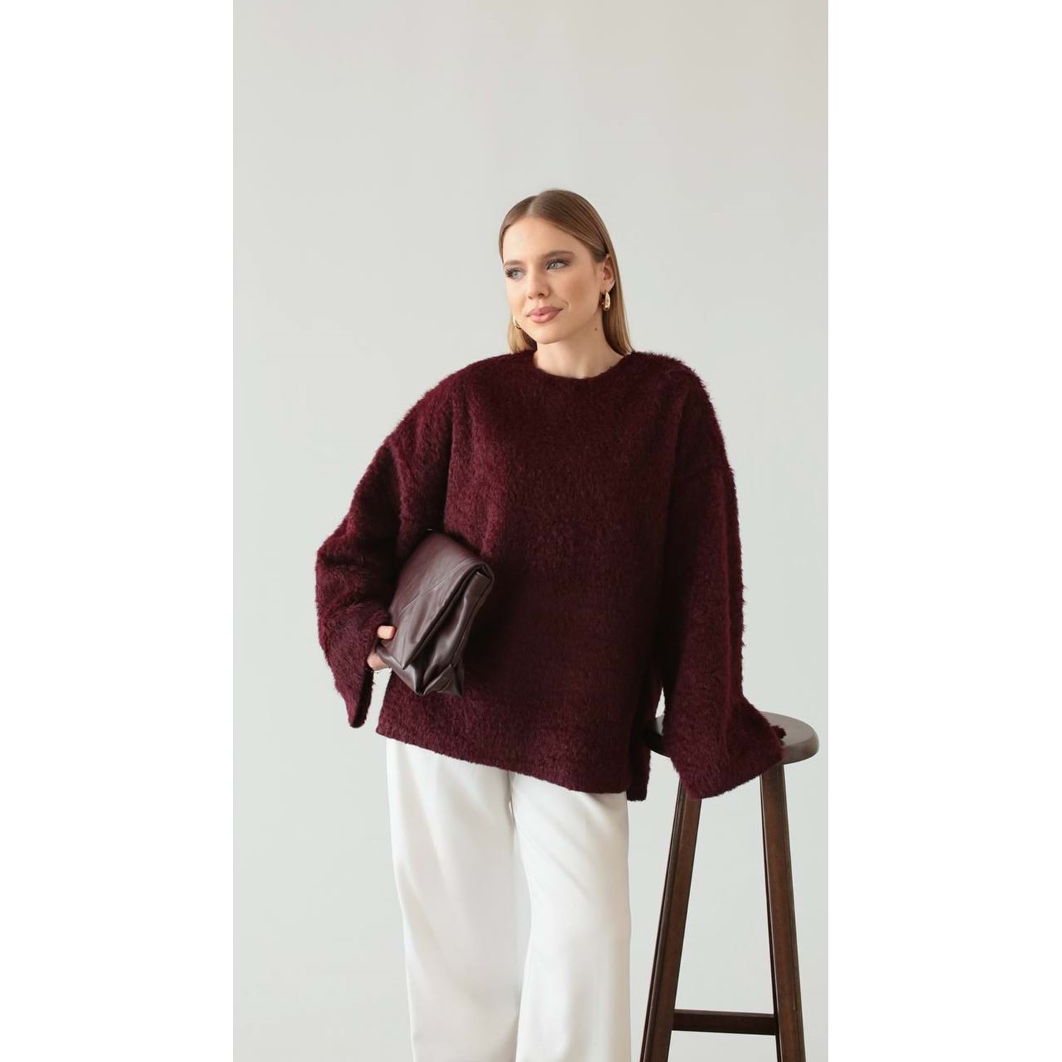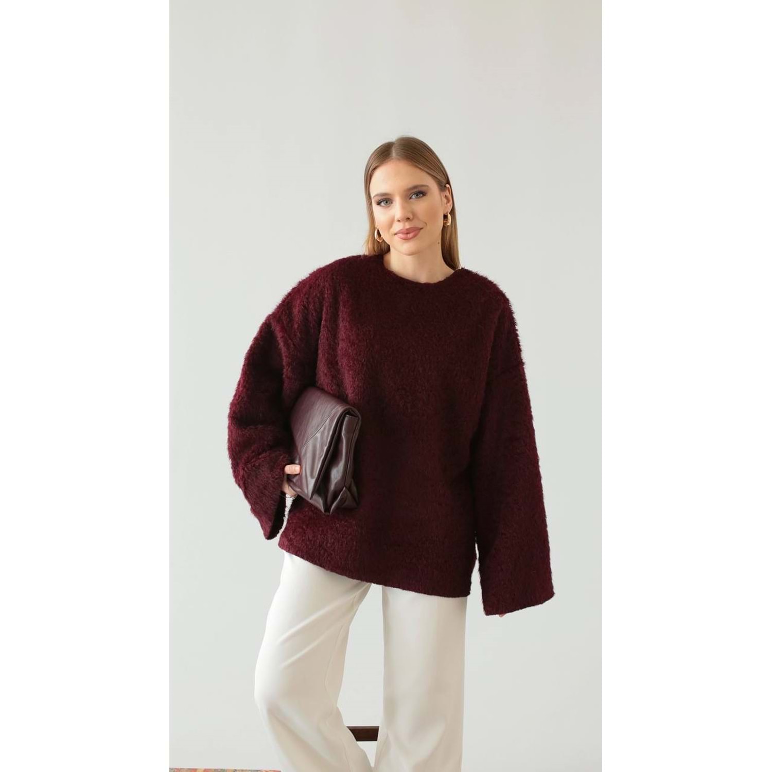 Bordo Peluş Sweatshirt, Bordo Üst, Sakallı Sweat, Tek Beden Giyim, Kışlık Spor Üst, Oversize Bordo Sweat, Sıcak Tutan Sweat