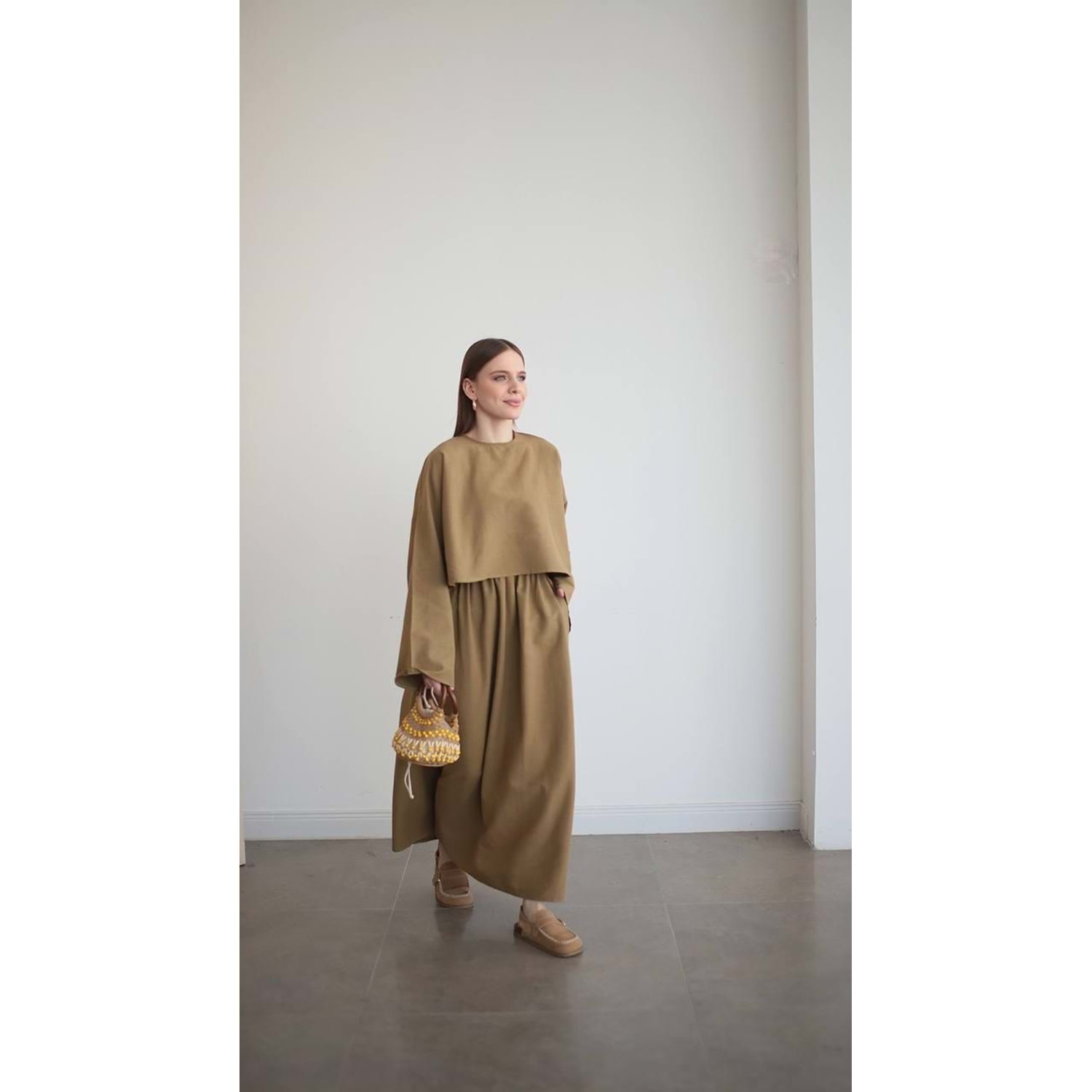 Basic Keten Etekli Takım Yağ Yeşili 2 Beden