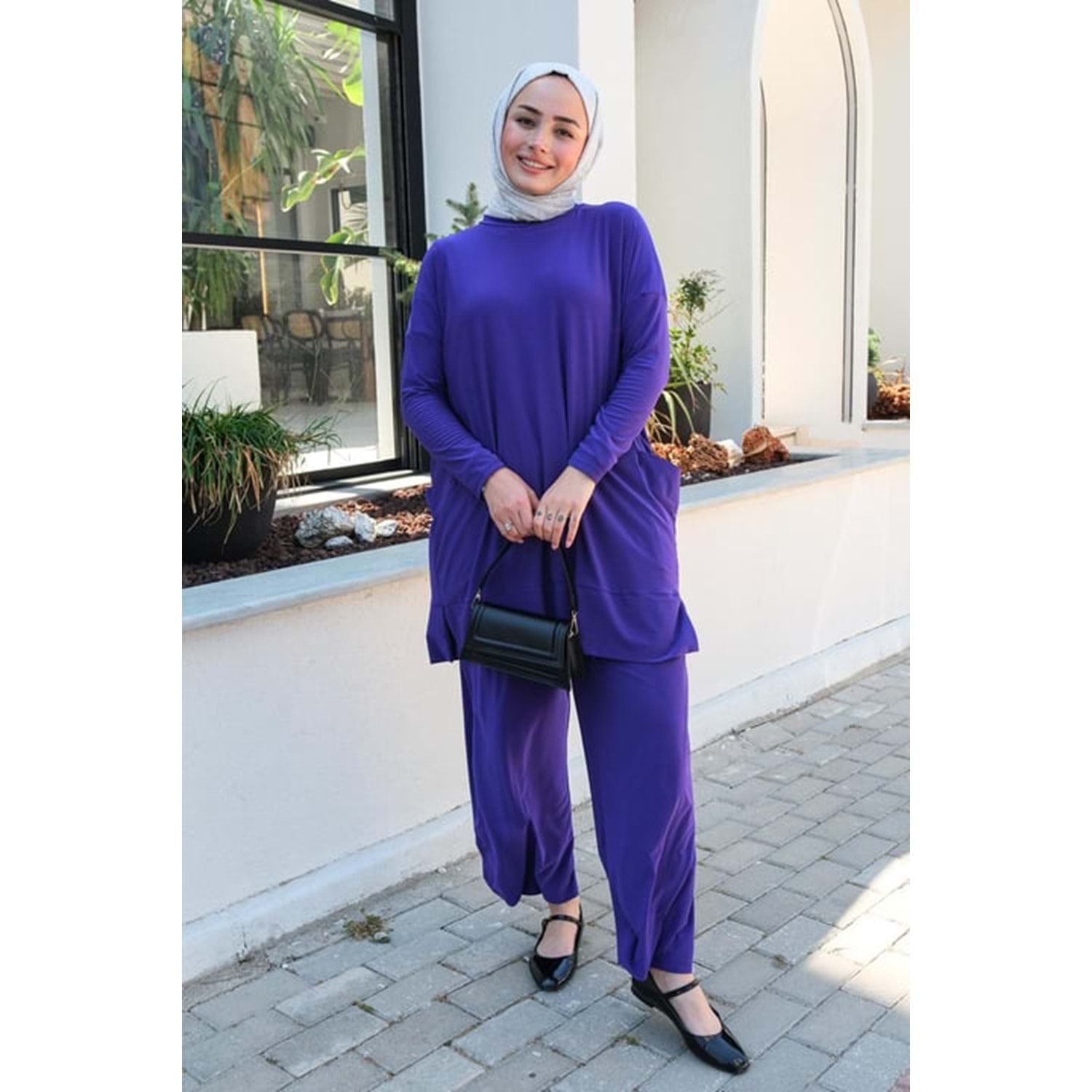 Uzun üst (85 cm) ve rahat kesim pantolon (100 cm) ölçüleri ile S-M beden kullanıcılarına uygundur. Tesettür giyimde konforlu bir alternatif arayanlar için ideal.
