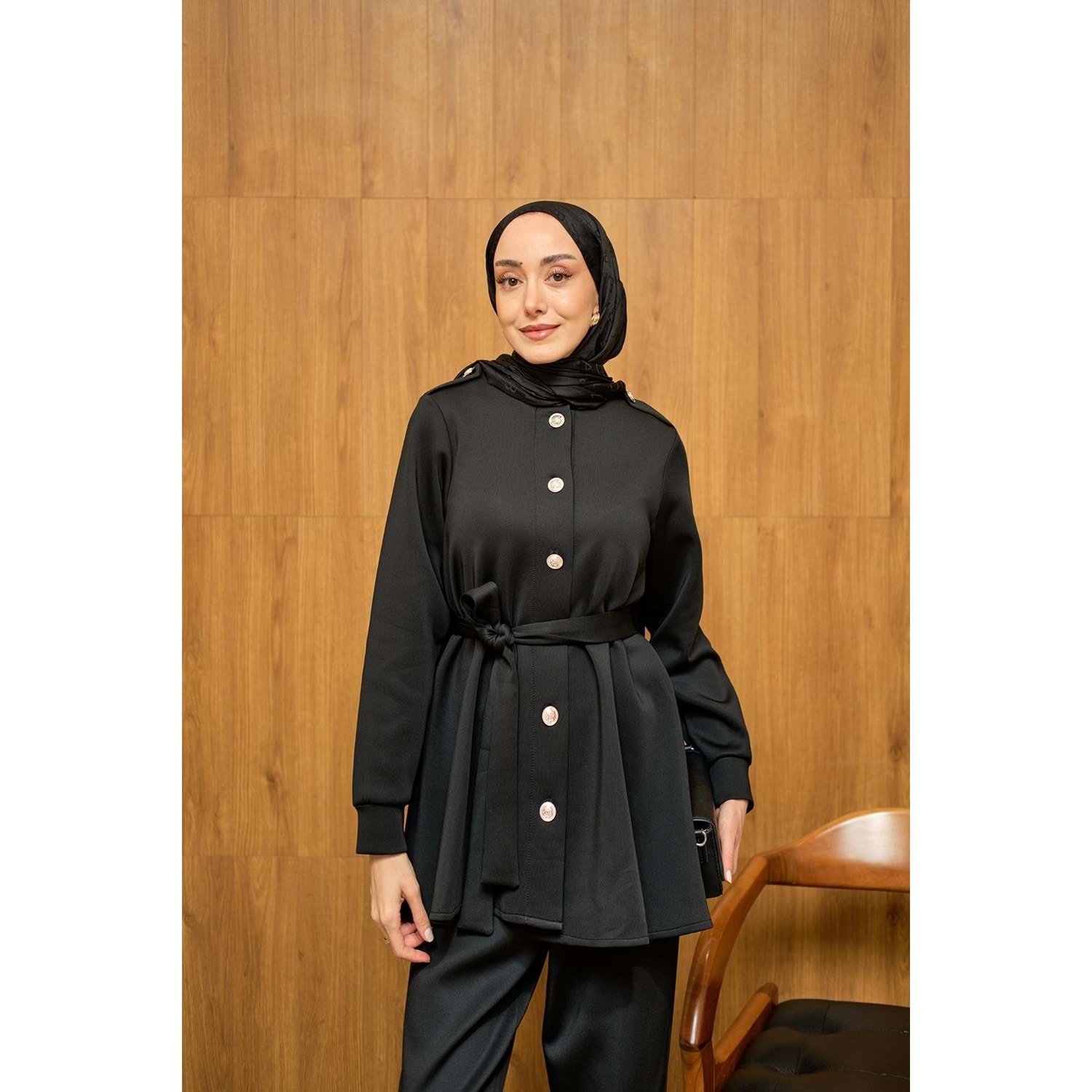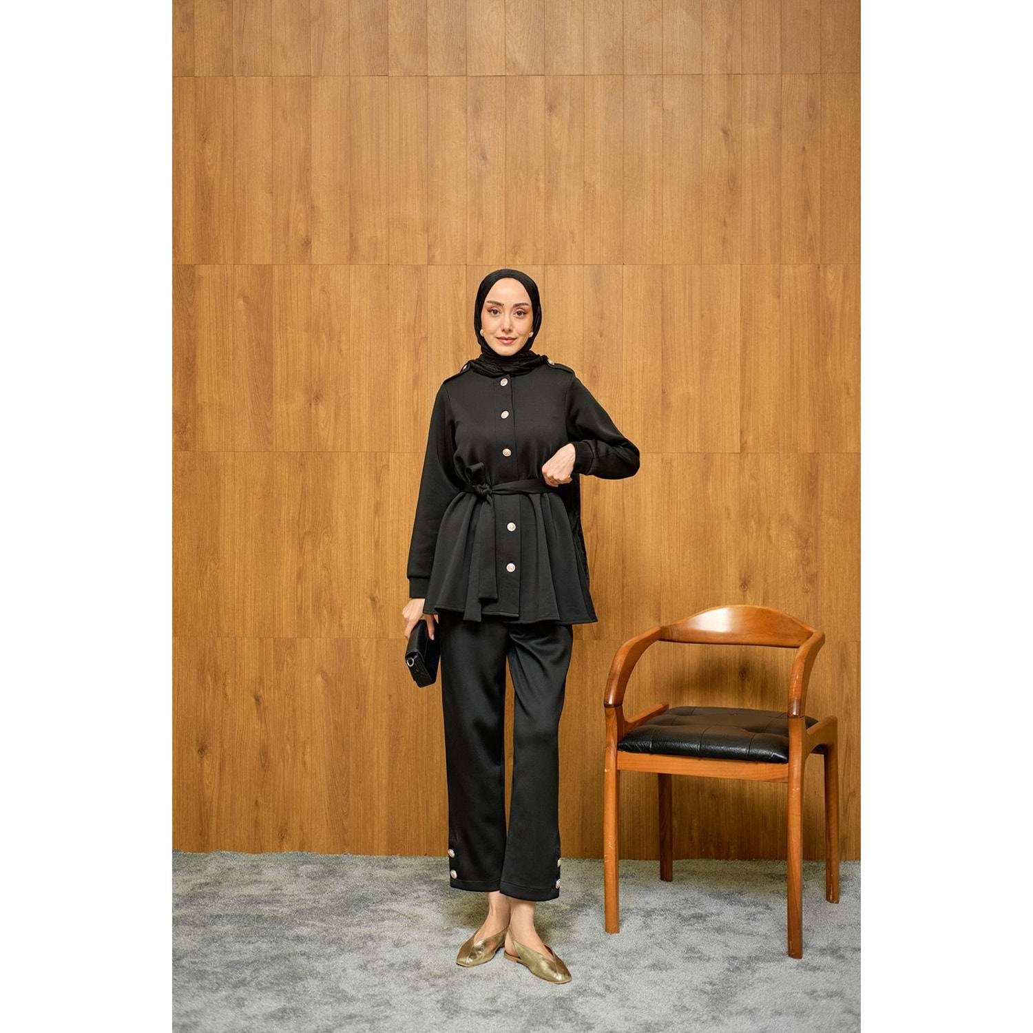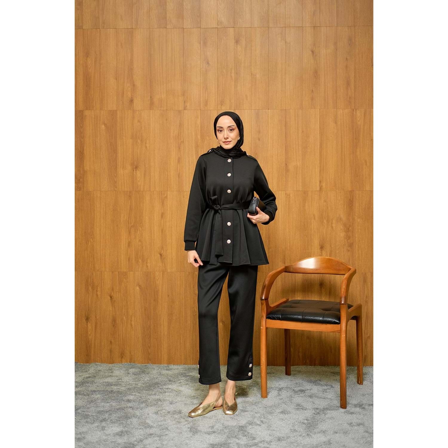 Apoletli Kemerli İkili Siyah Scuba Kadın Takım (36-38) Beden