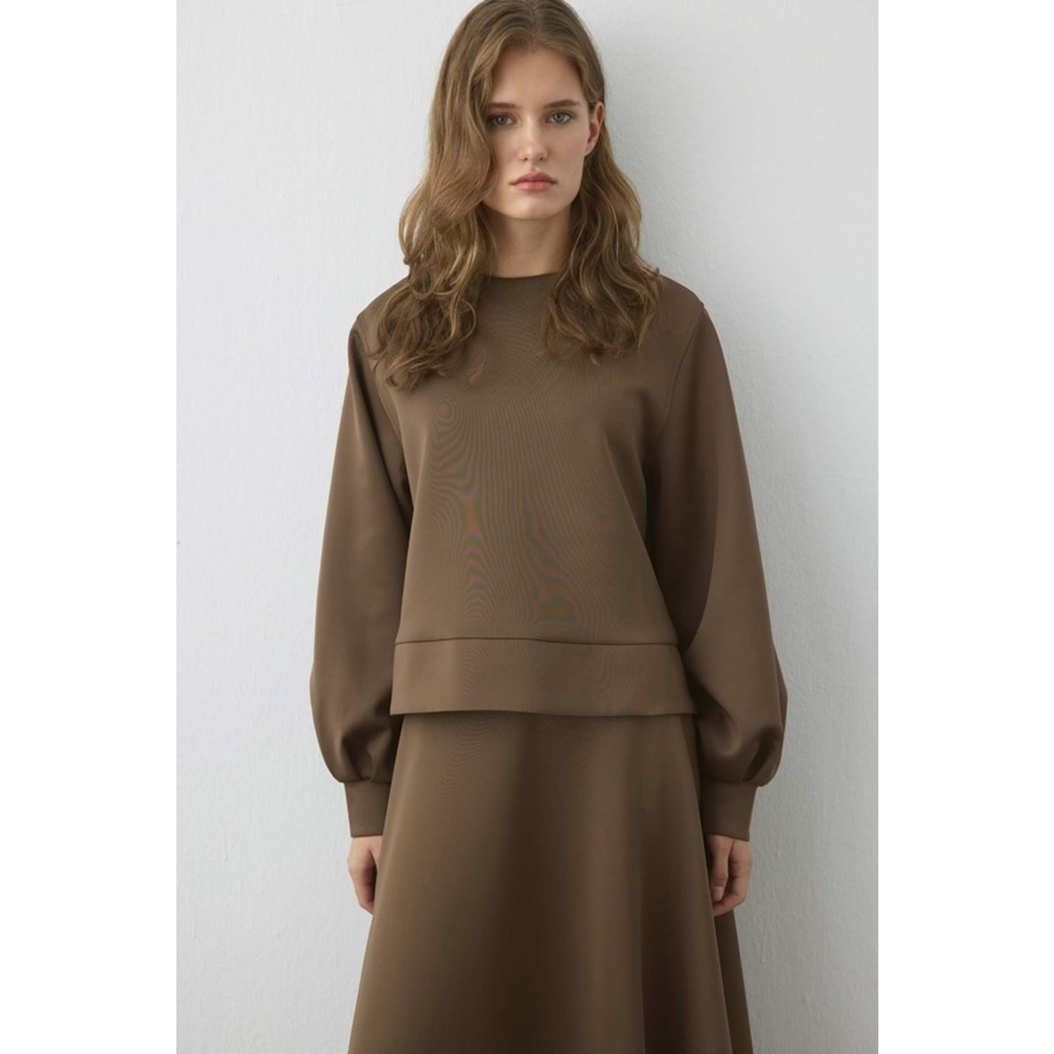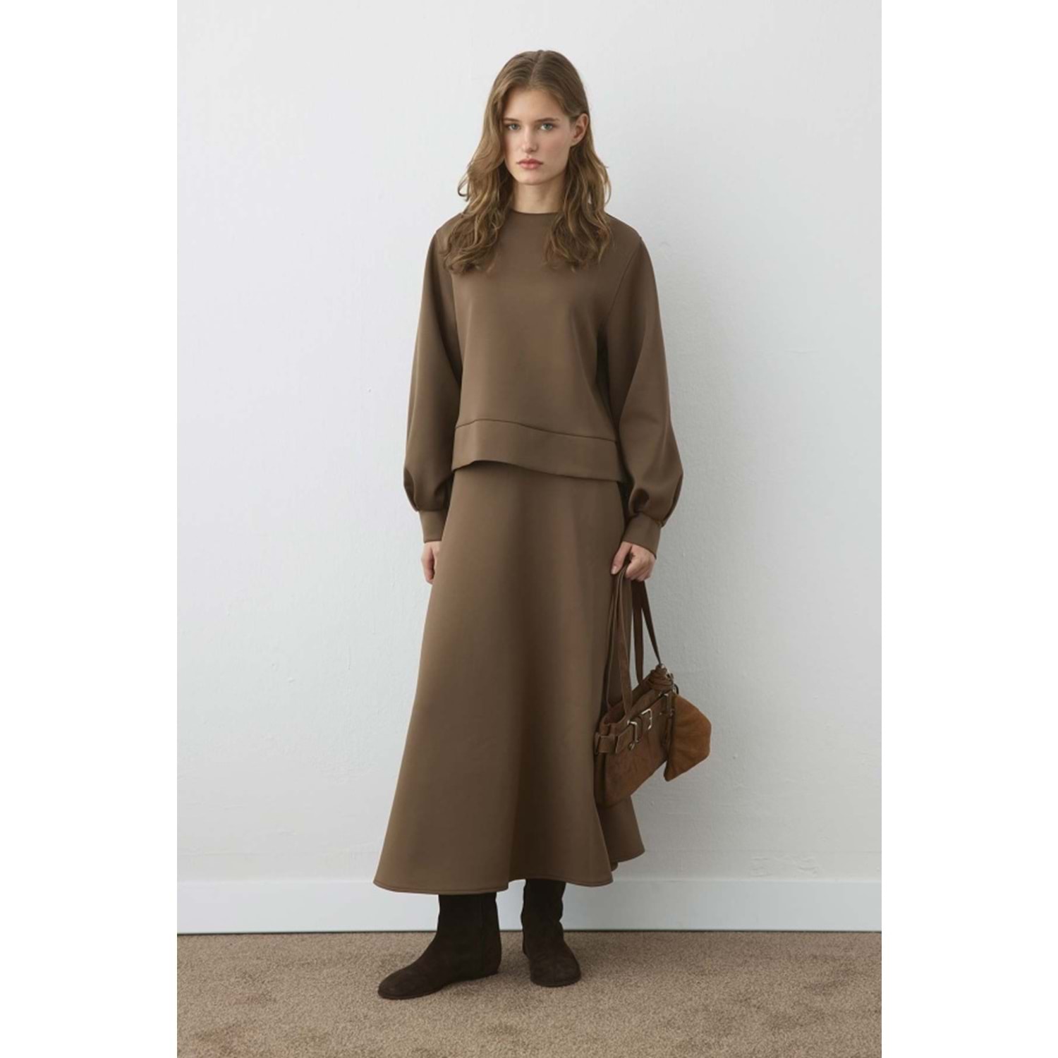 Kahverengi Büyük Beden Takım, L/XL Scuba Takım, Tesettür Kloş Etek, Balon Kol Takım, Kemerli Etekli Takım, Yeni Sezon Kahverengi