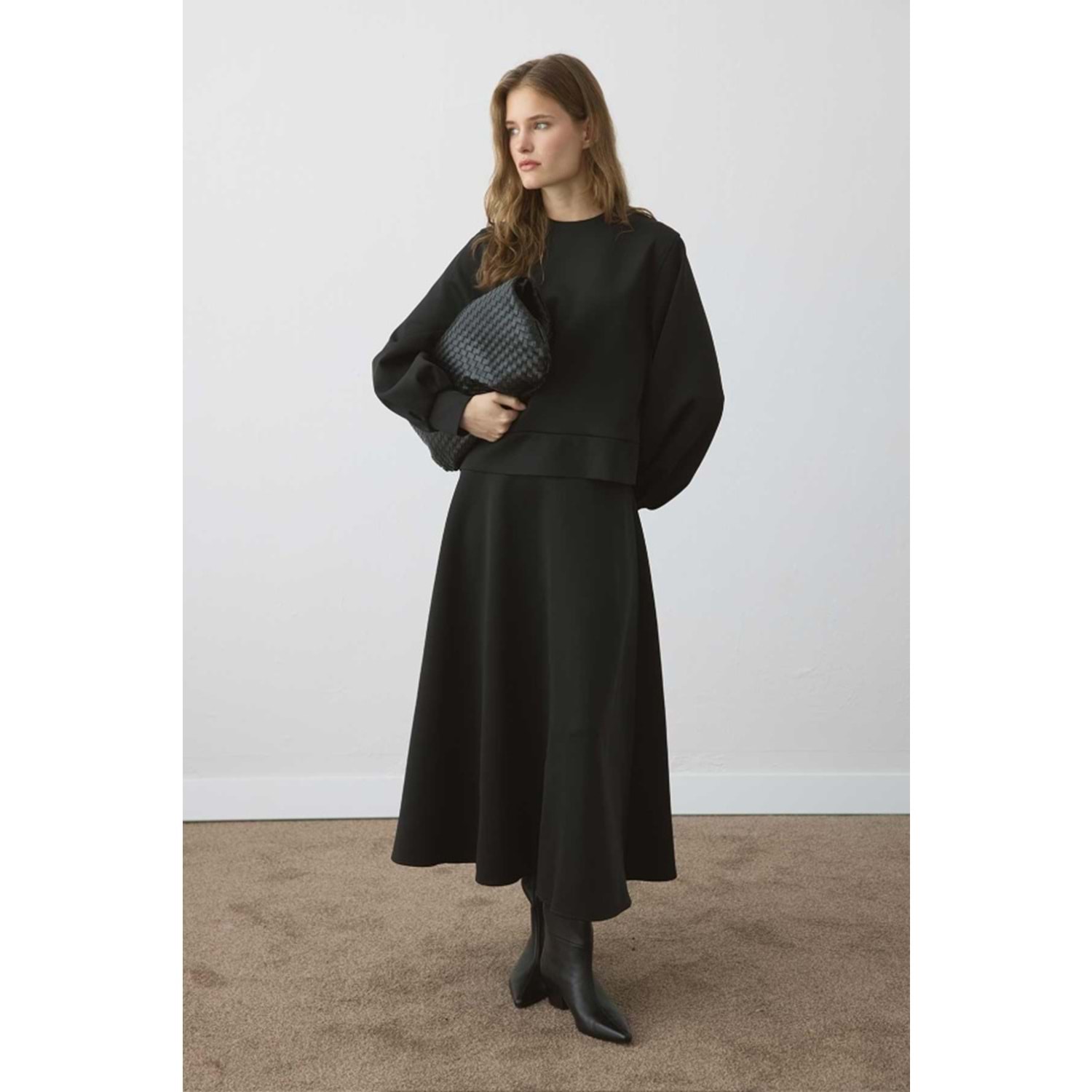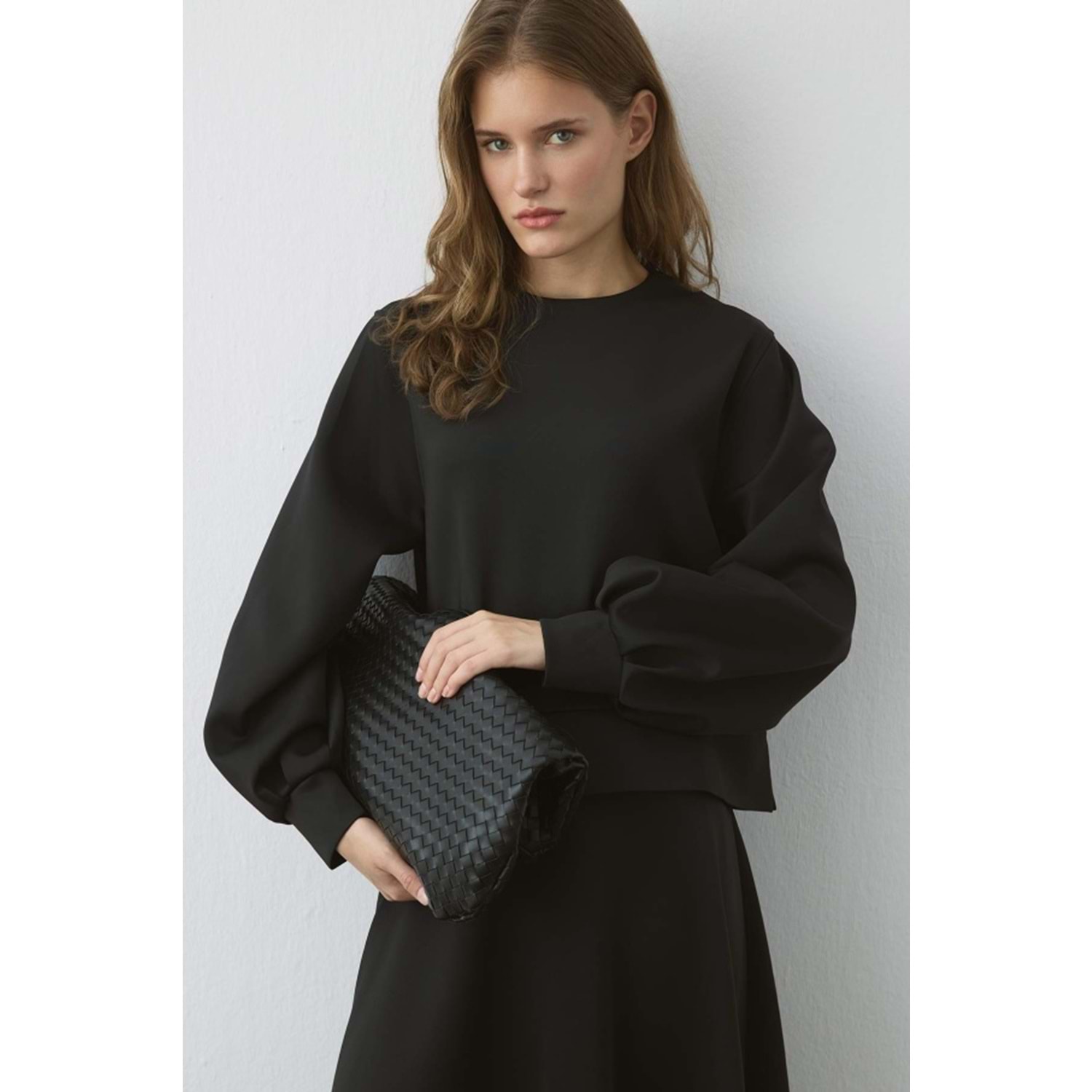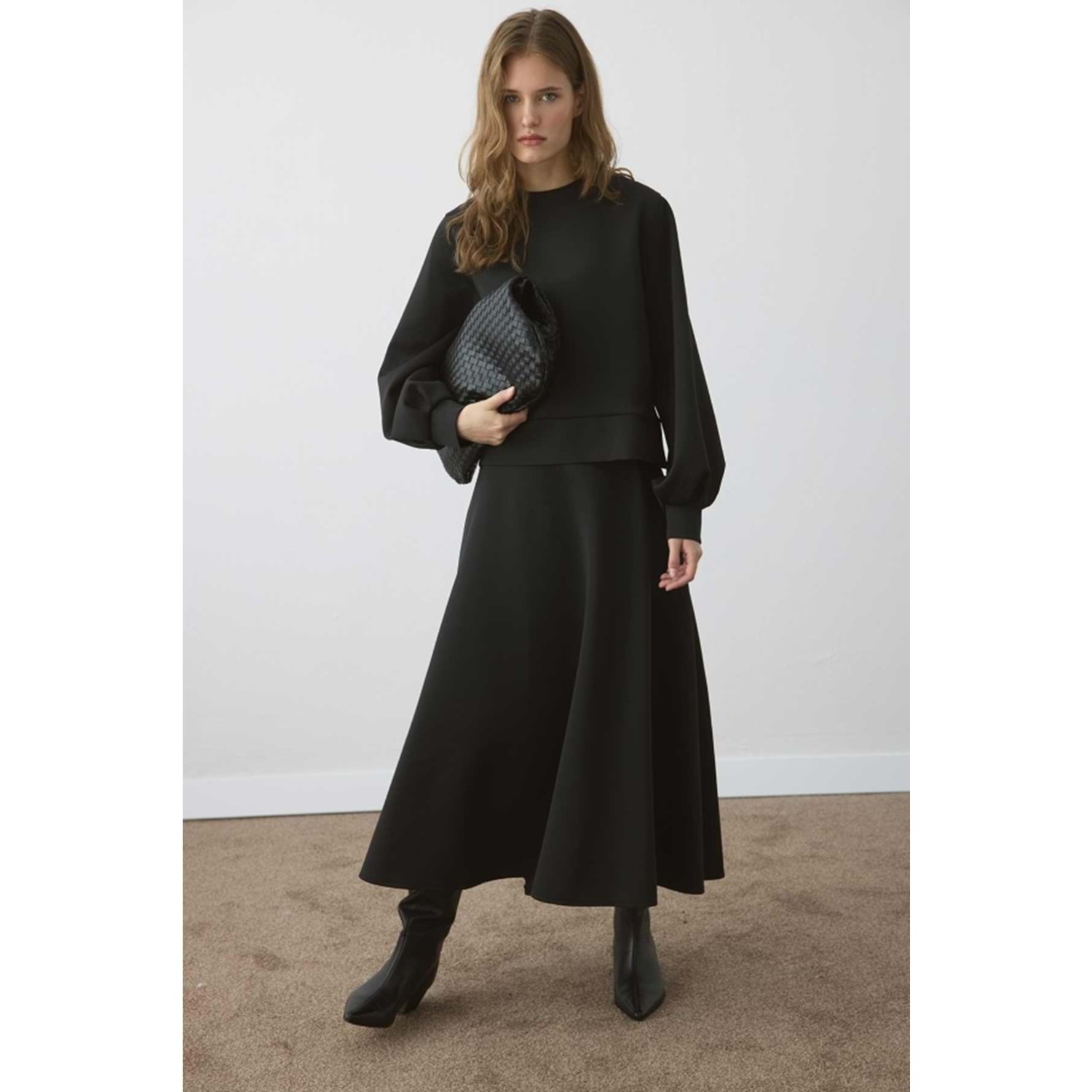 Siyah Bisiklet Yaka Pilikaşeli Balon Kol Etekli Takım S/M
