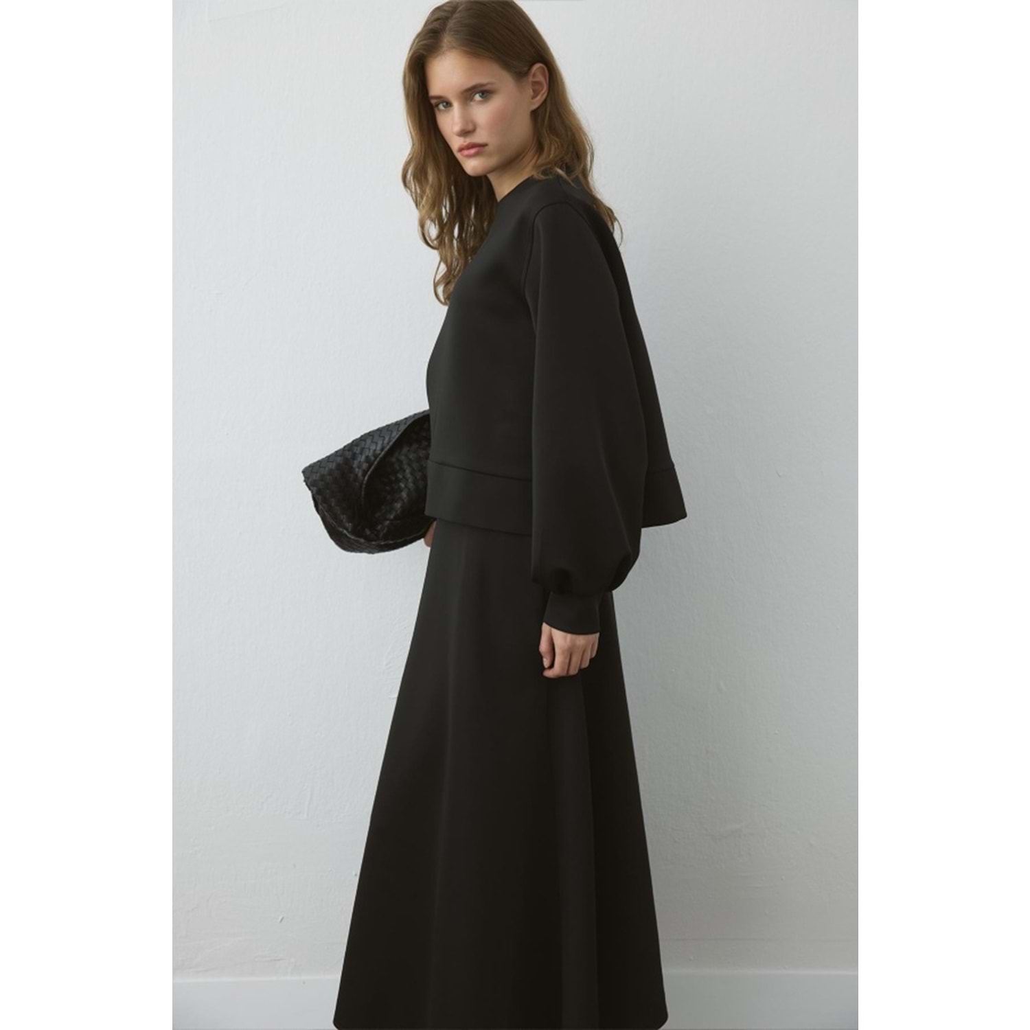 Siyah Takım, Balon Kol Takım, Scuba Kumaş, Tesettür Takım, Kloş Etekli Takım, Bisiklet Yaka, S/M Beden Takım, Kemerli Etekli Takım