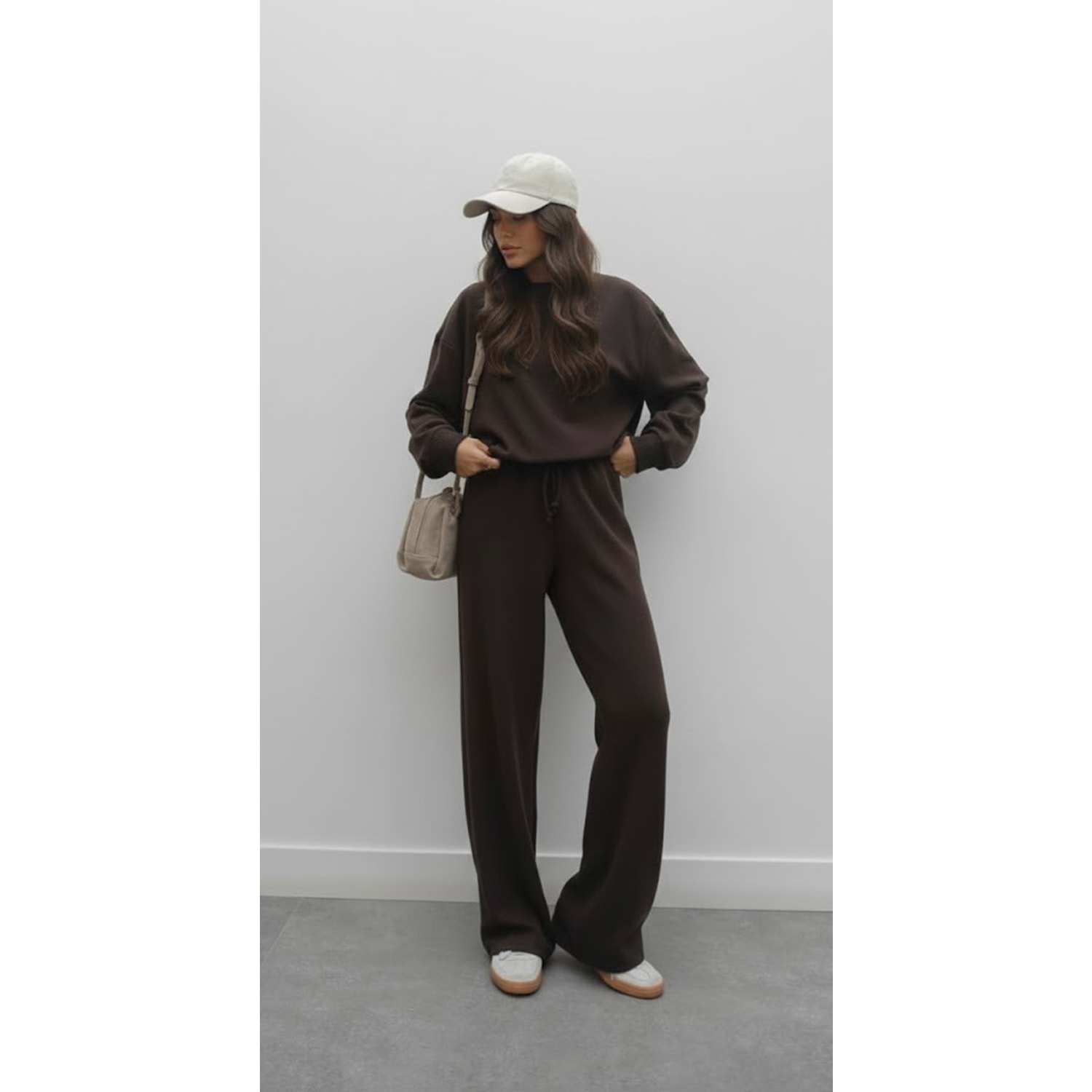 kahverengi selanik takım, kadın günlük takım, fitilli sweat pantolon set, 38 beden kadın takım, rahat kesim eşofman, şık ev kombini