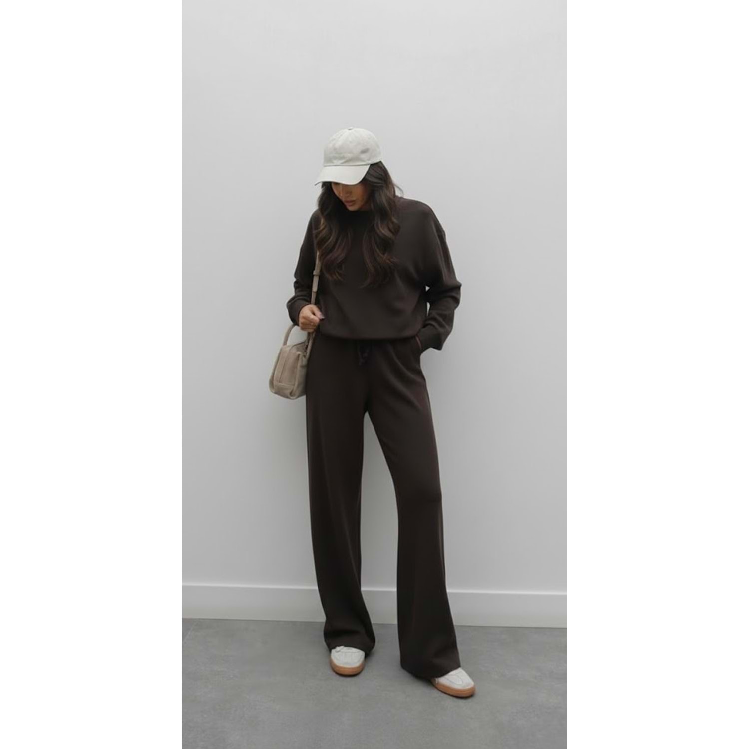 Selanik Örgü Pantolonlu Kadın Takım - Kahverengi (S / 36)
