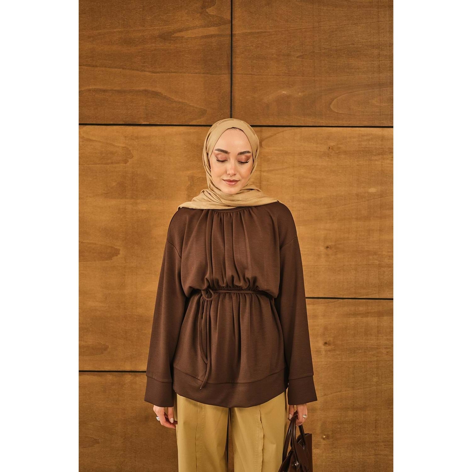 Kahverengi Tunik L-XL, Modal Tunik 42 Beden, Büyük Beden Kahve Tunik, Beli Büzgülü, Tesettür Giyim, Dökümlü Tunik, Kışlık Kombin